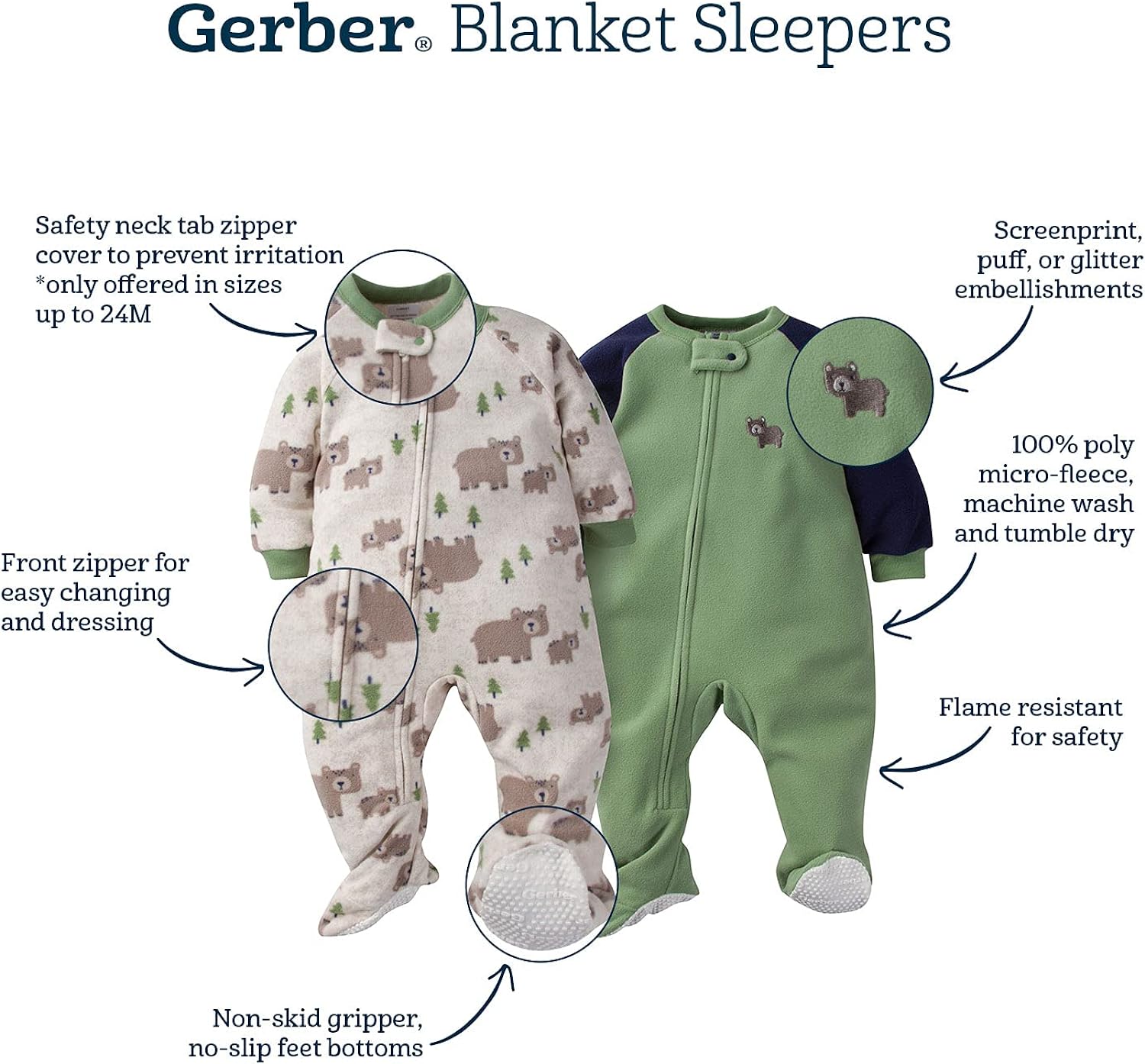 Gerber Baby Boys’ Toddler Loose Fit Flame Resistant Fleece Footed Pajamas 2-Pack(Blue Dogs)