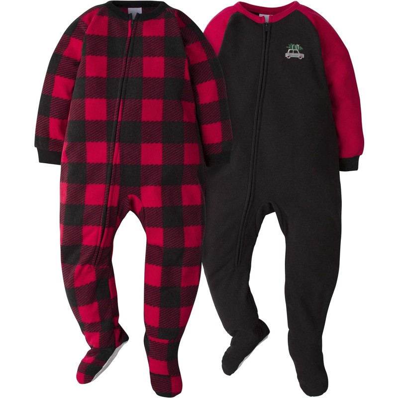 Gerber Baby Boys’ Toddler Loose Fit Flame Resistant Fleece Footed Pajamas 2-Pack(Red/Grey Plaid)