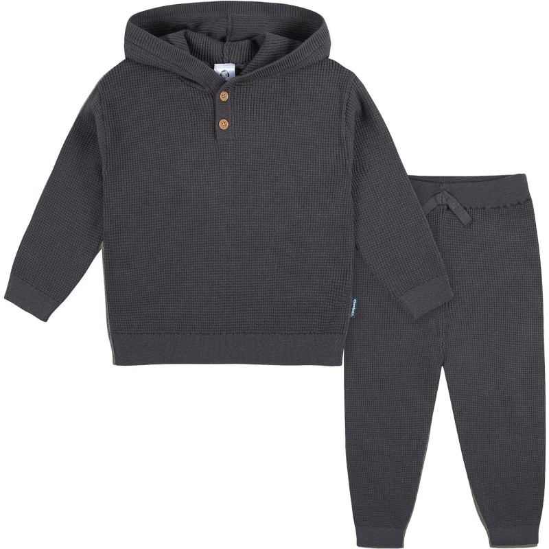 Gerber Baby Boys Toddler Sweater Knit Hooded Top and Pant Set(Charcoal)