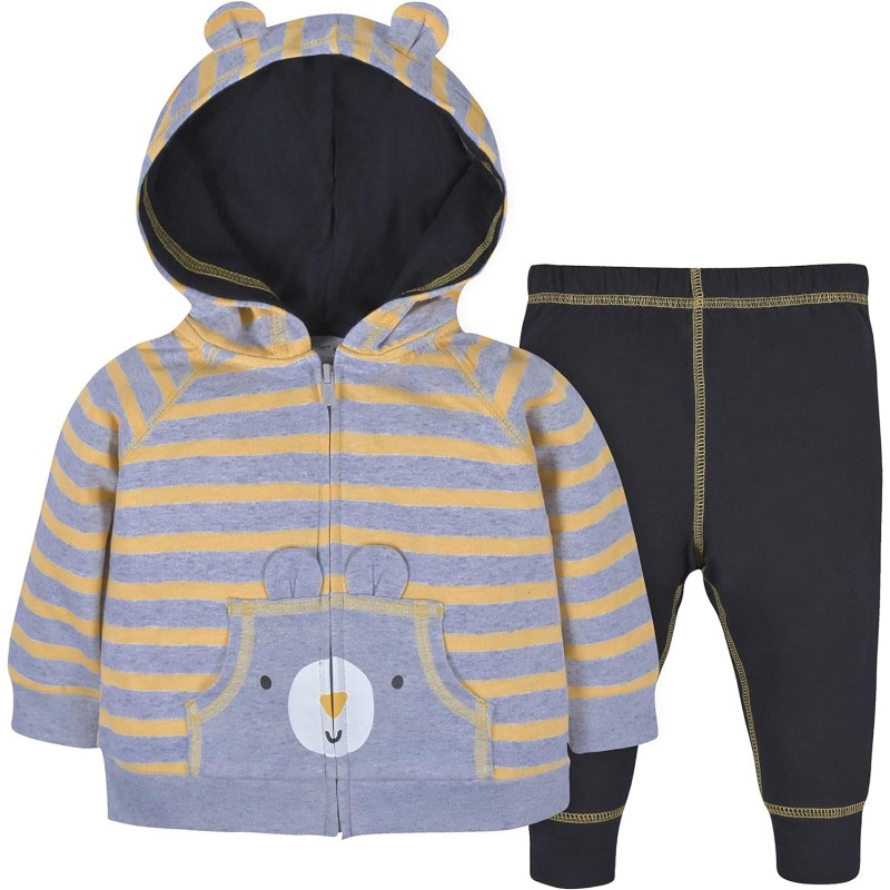 Gerber Baby Boys Toddler Zip Hoodie & Joggers Clothing Set(Bear Grey)