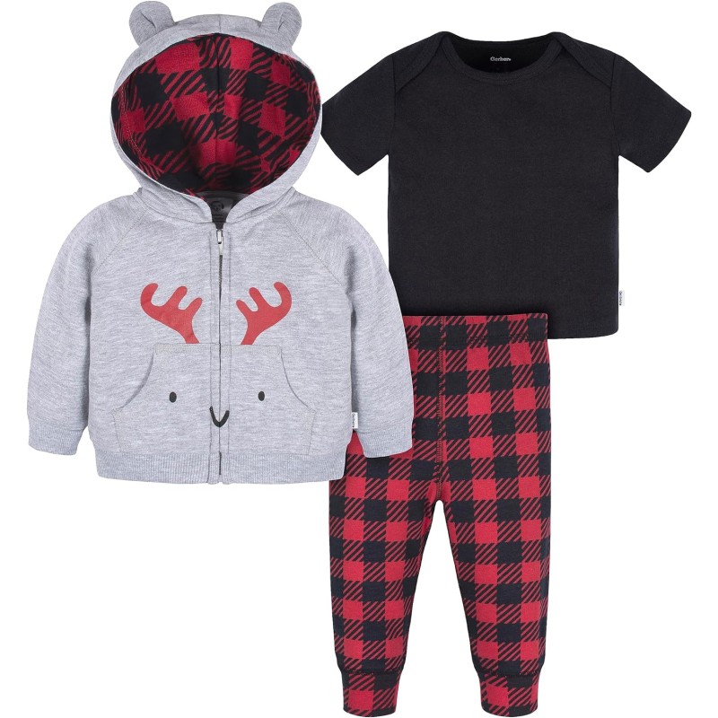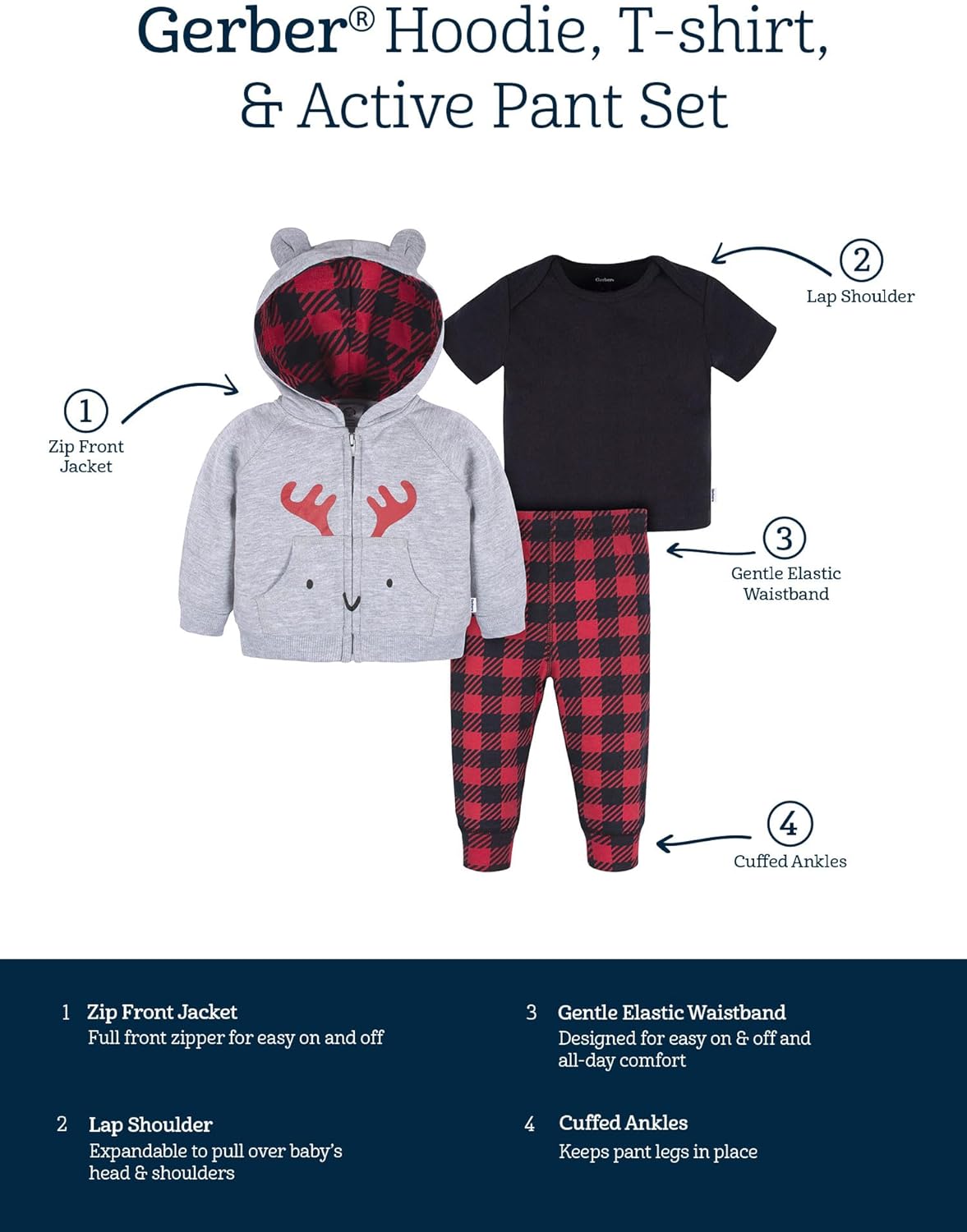 Gerber Baby Boys Toddler Zip Hoodie & Joggers Clothing Set(Red Moose)