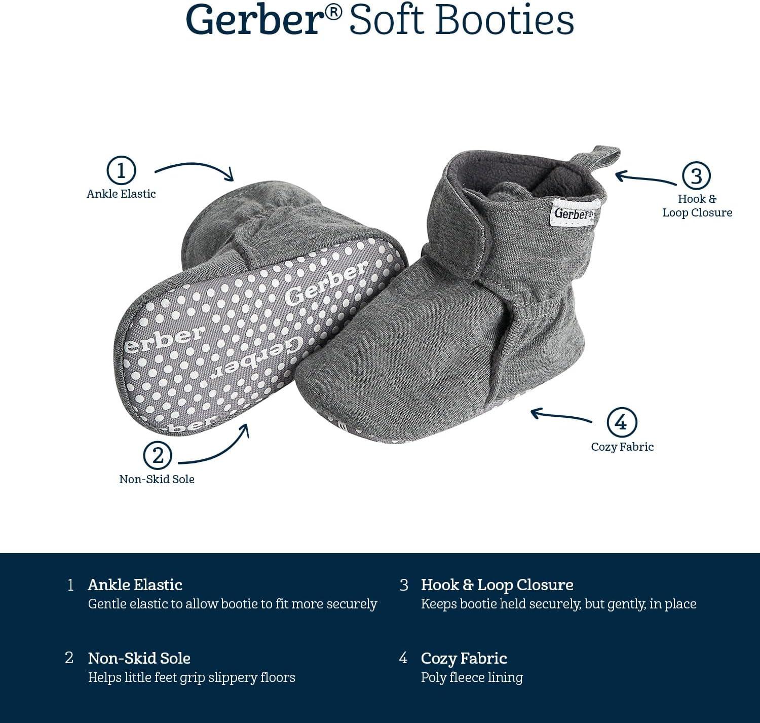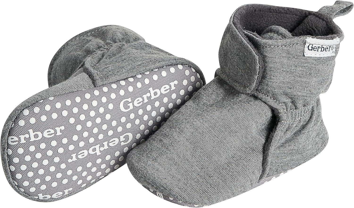 Gerber Baby Fleece Lined Wrap Fasten Non Skid Soft Slipper Booties(Grey Heather)