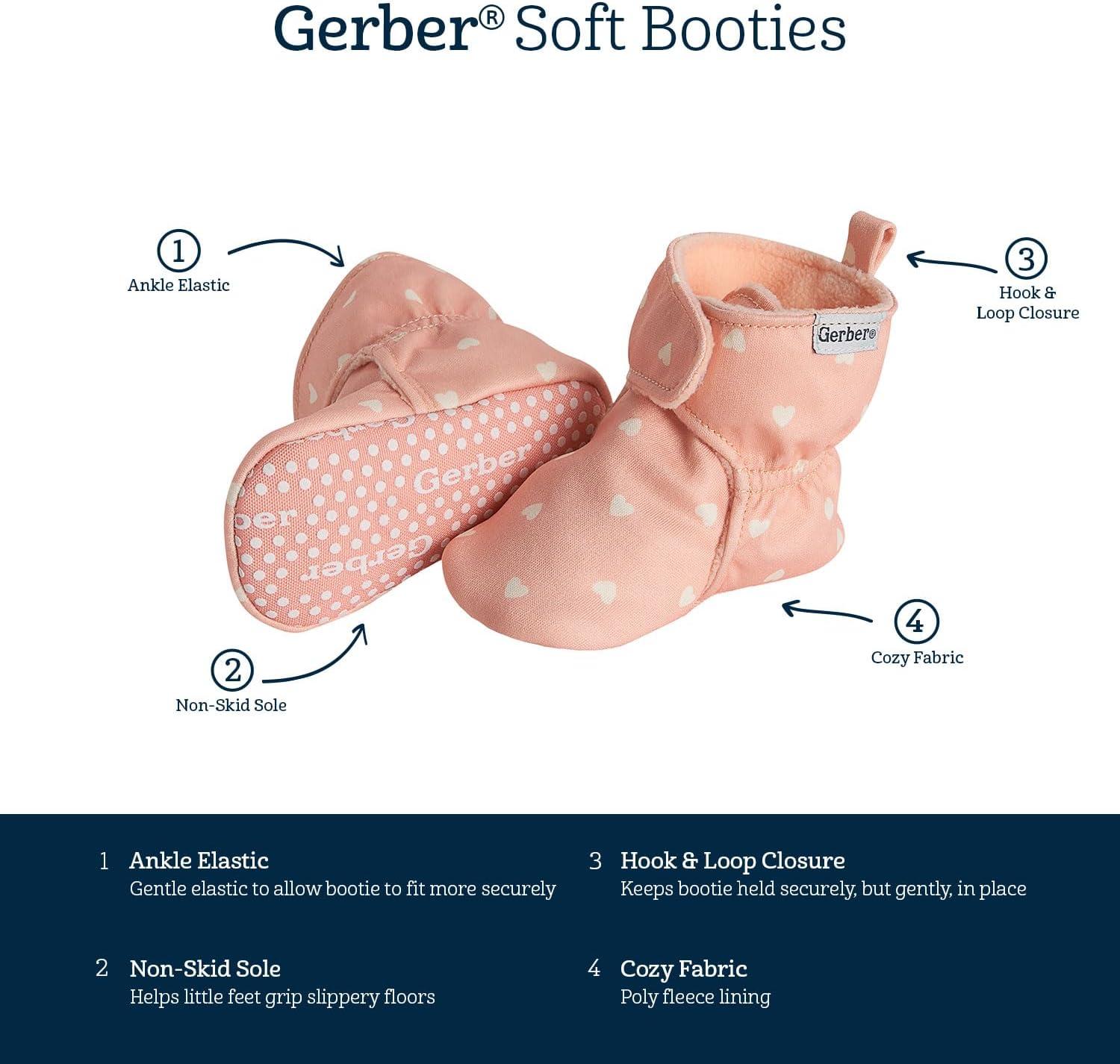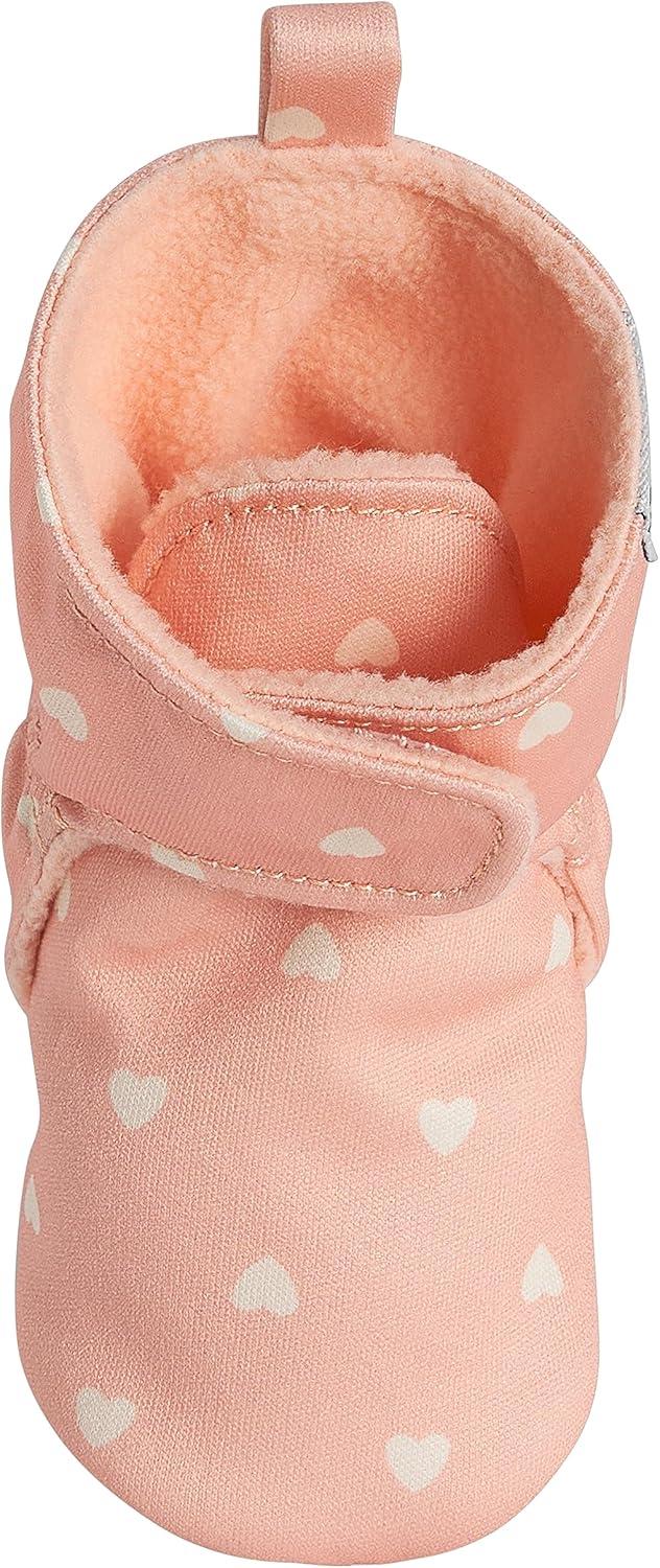 Gerber Baby Fleece Lined Wrap Fasten Non Skid Soft Slipper Booties(Pink Heart)