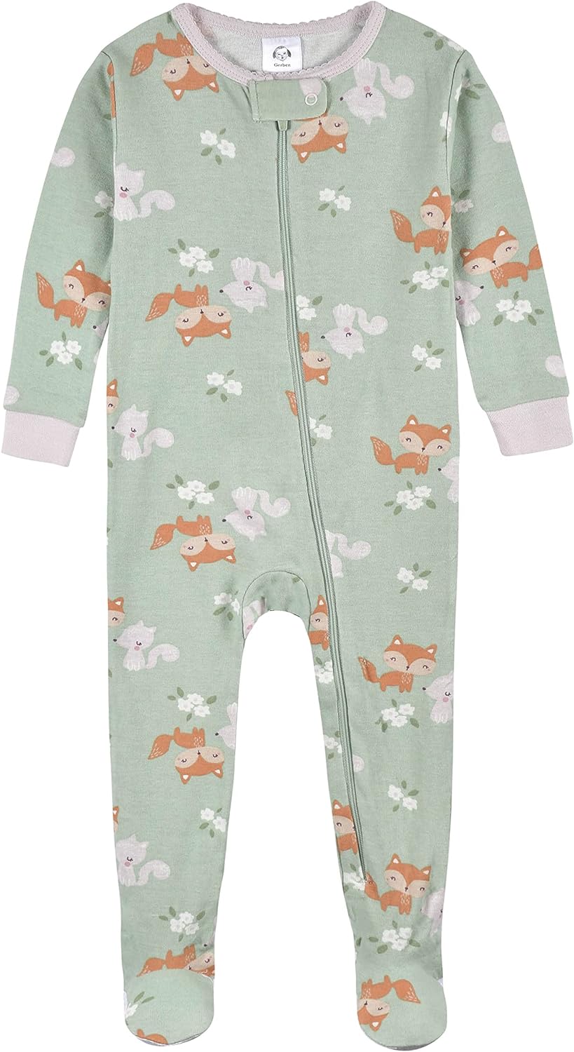 Gerber Baby Girls’ 2-Pack Footed Pajamas(Woodland Fox Purple)