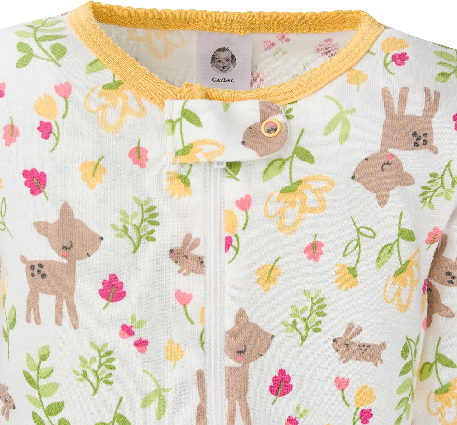 Gerber Baby Girls’ 2-Pack Footed Pajamas(Yellow Deer)