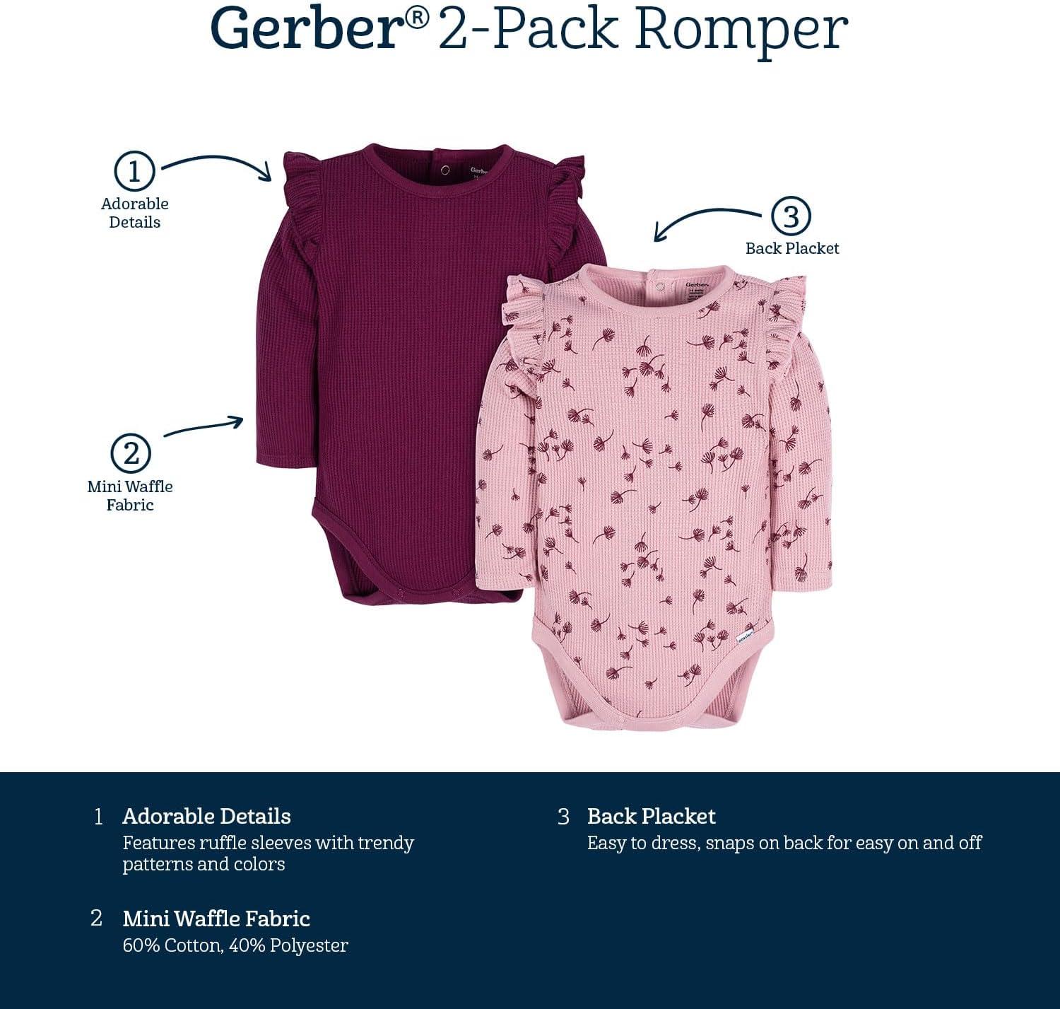 Gerber baby-girls 2-pack Long Ruffle Sleeve Onesies(Dandelions)