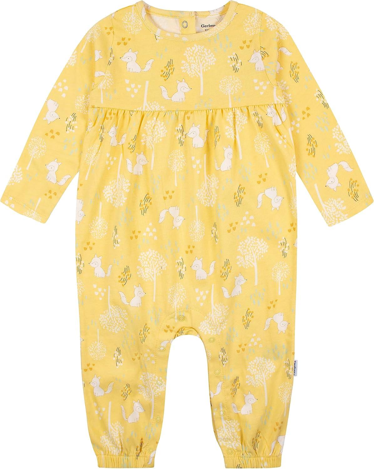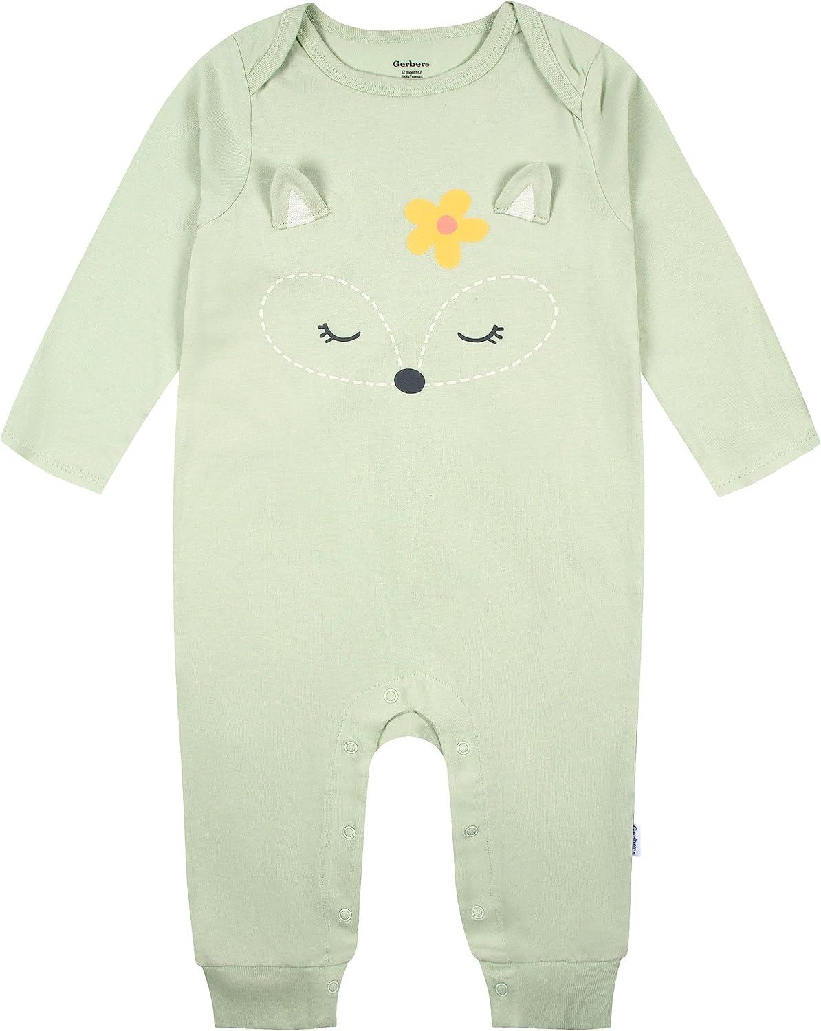 Gerber Baby Girls’ 2-pack Long Sleeve Jumpsuit(Green Yellow Fox)