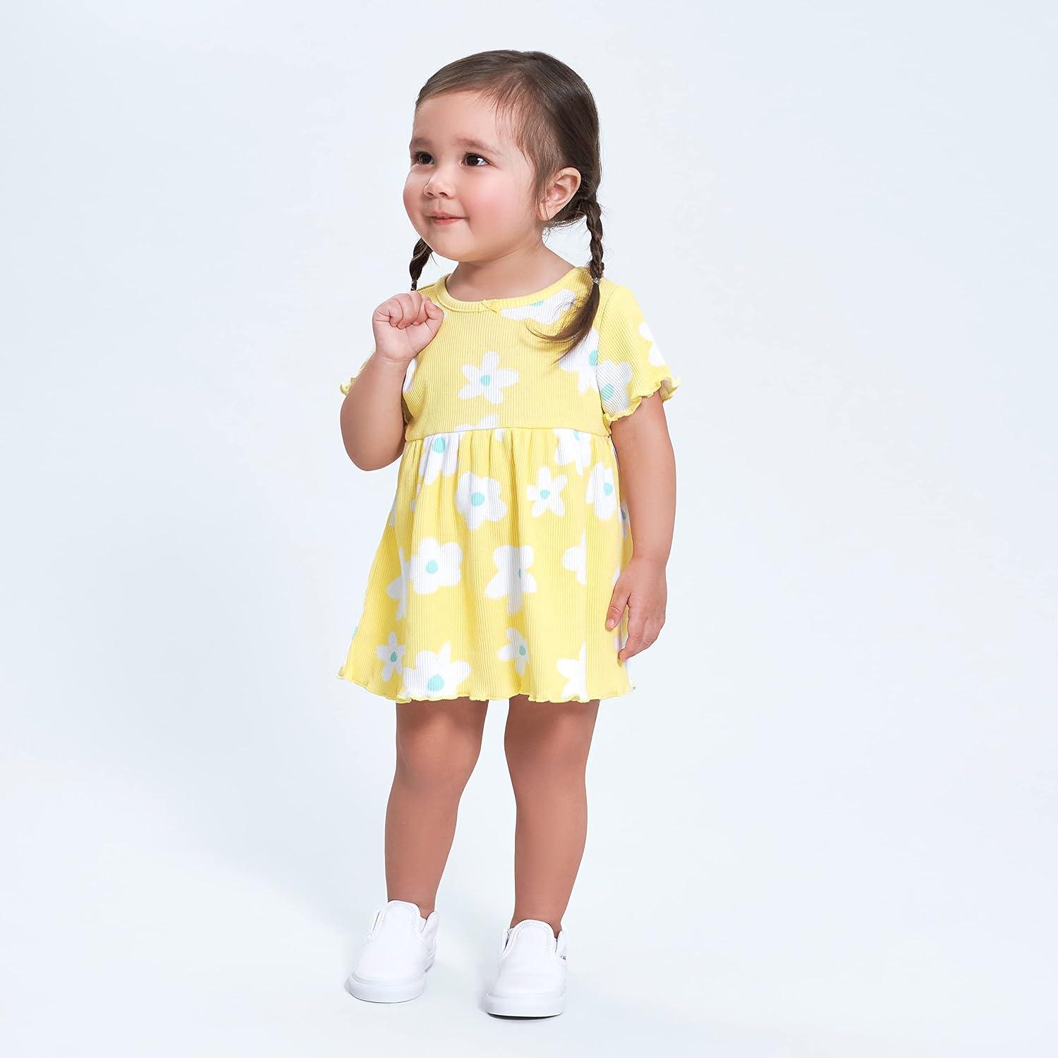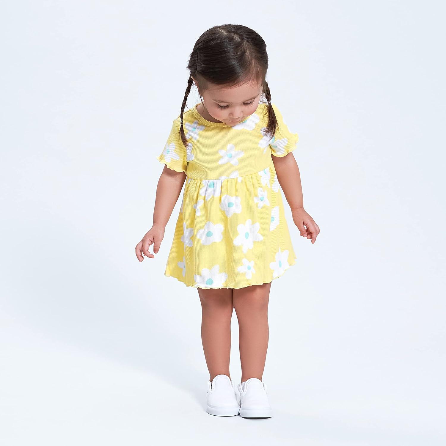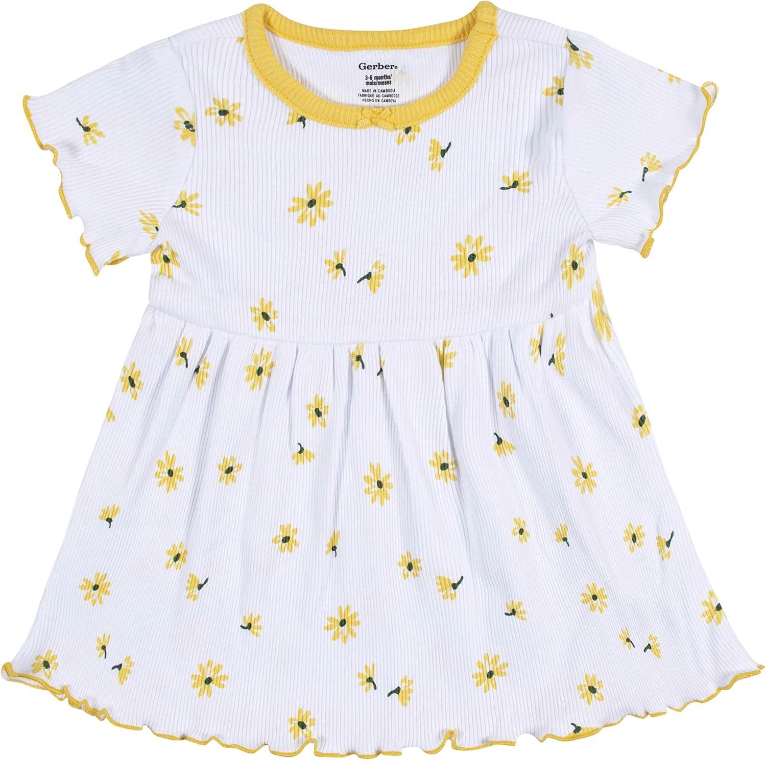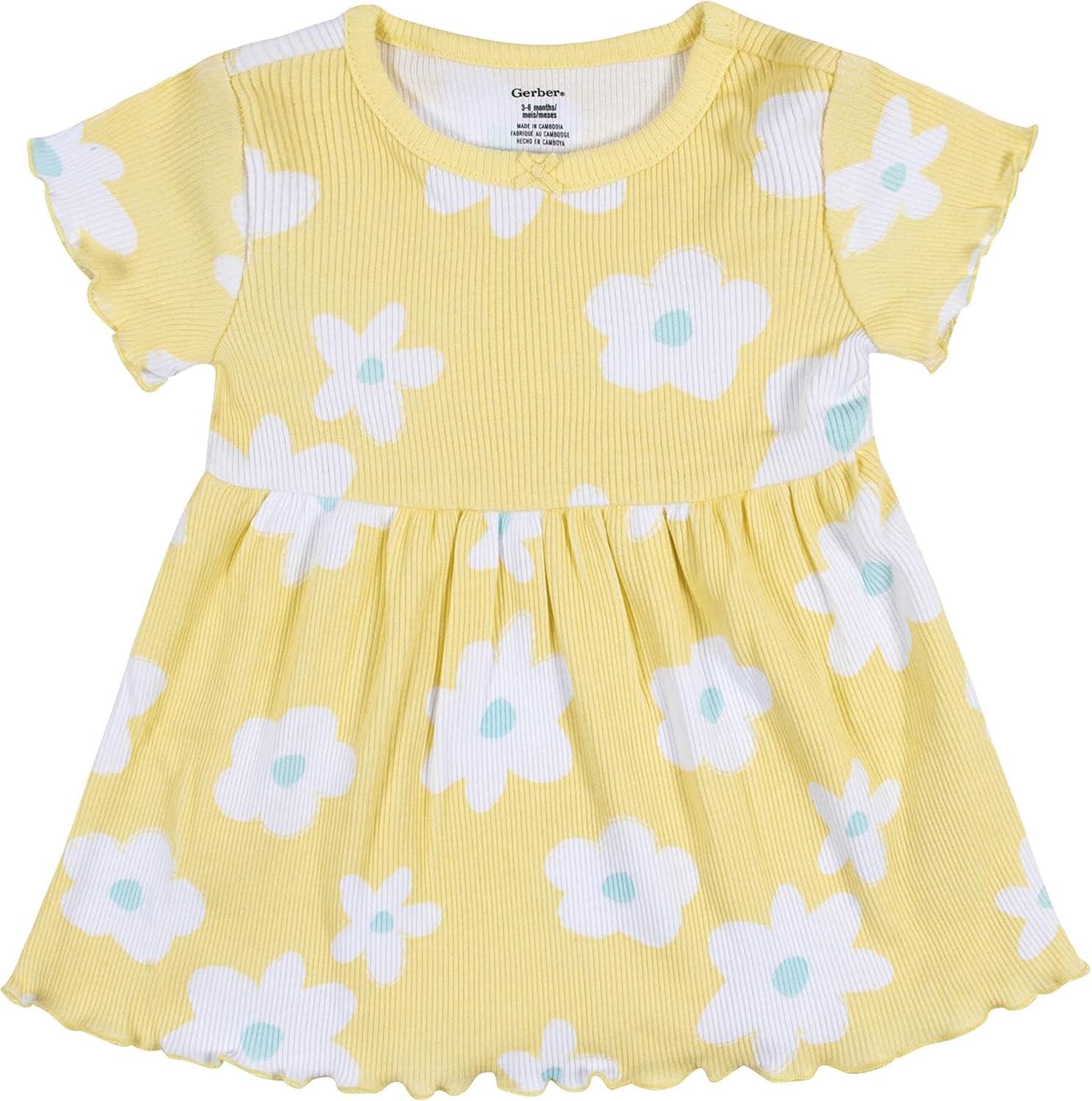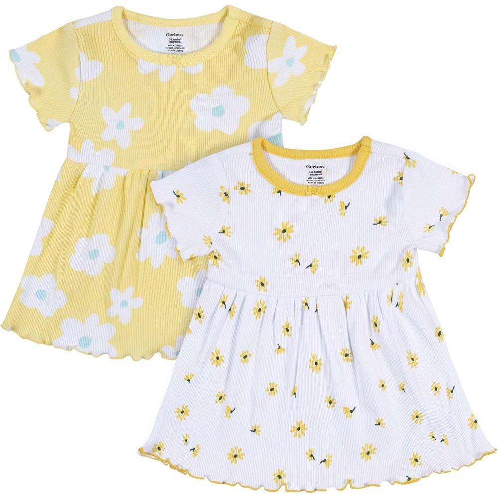 Gerber baby-girls 2-pack Short Sleeve Cotton Dresses(Yellow Floral)