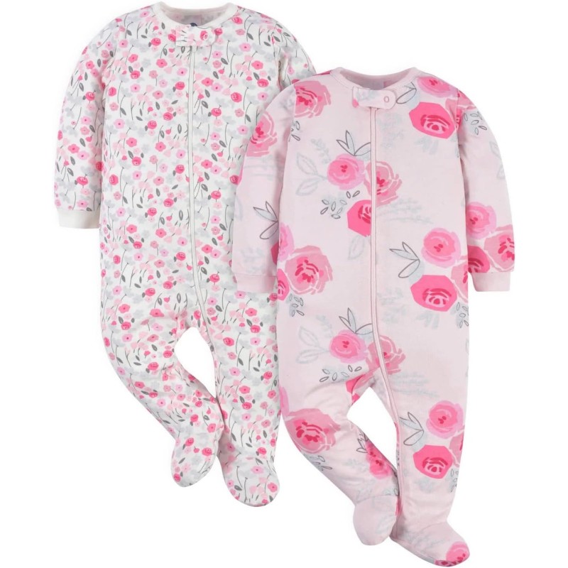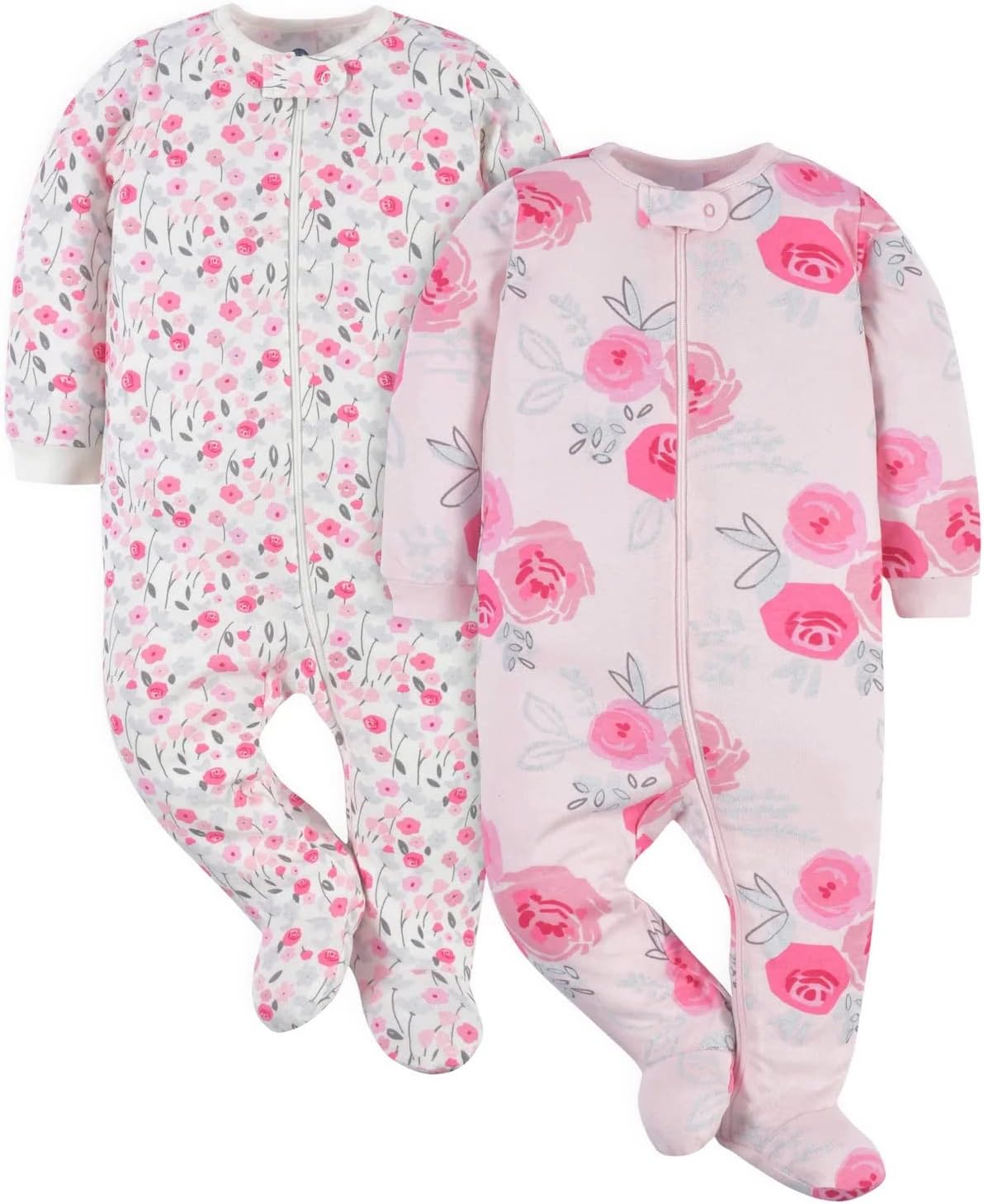 Gerber Baby Girls’ 2-Pack Sleep ‘N Play(Baby Rose Floral)