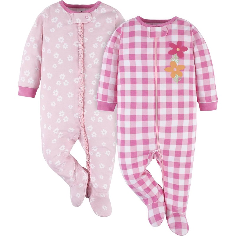 Gerber Baby Girls’ 2-Pack Sleep ‘N Play(Pink Gingham and Daisies)