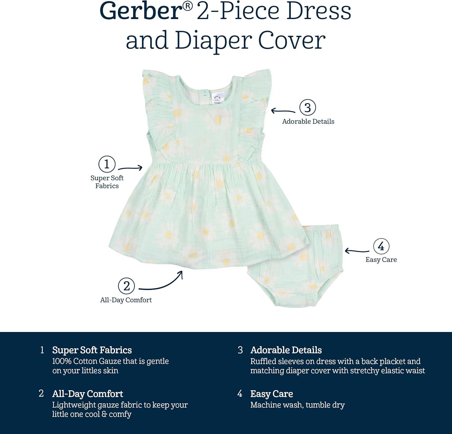 Gerber baby-girls 2 Piece Dress and Diaper Cover Set(Daisies)