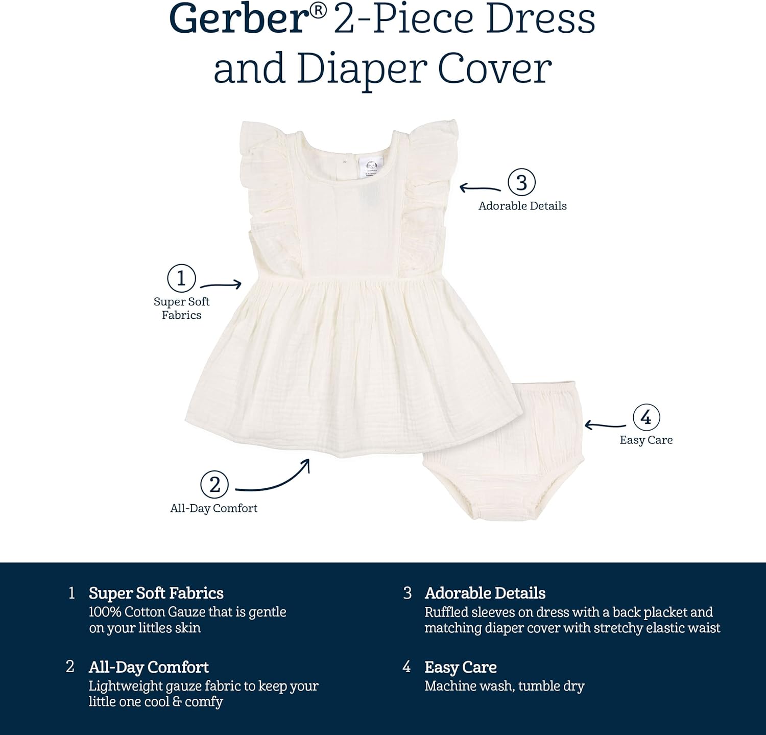 Gerber Baby Girls’ 2 Piece Dress and Diaper Cover Set(Ivory)