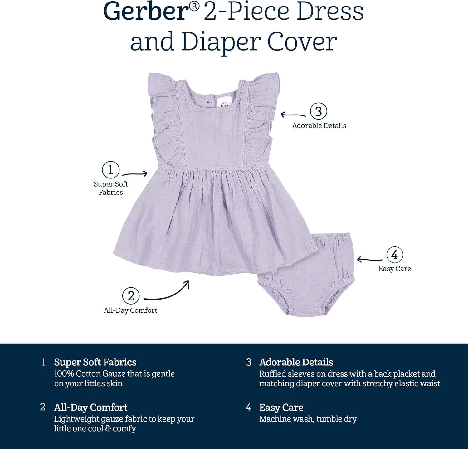 Gerber baby-girls 2 Piece Dress and Diaper Cover Set(Purple)