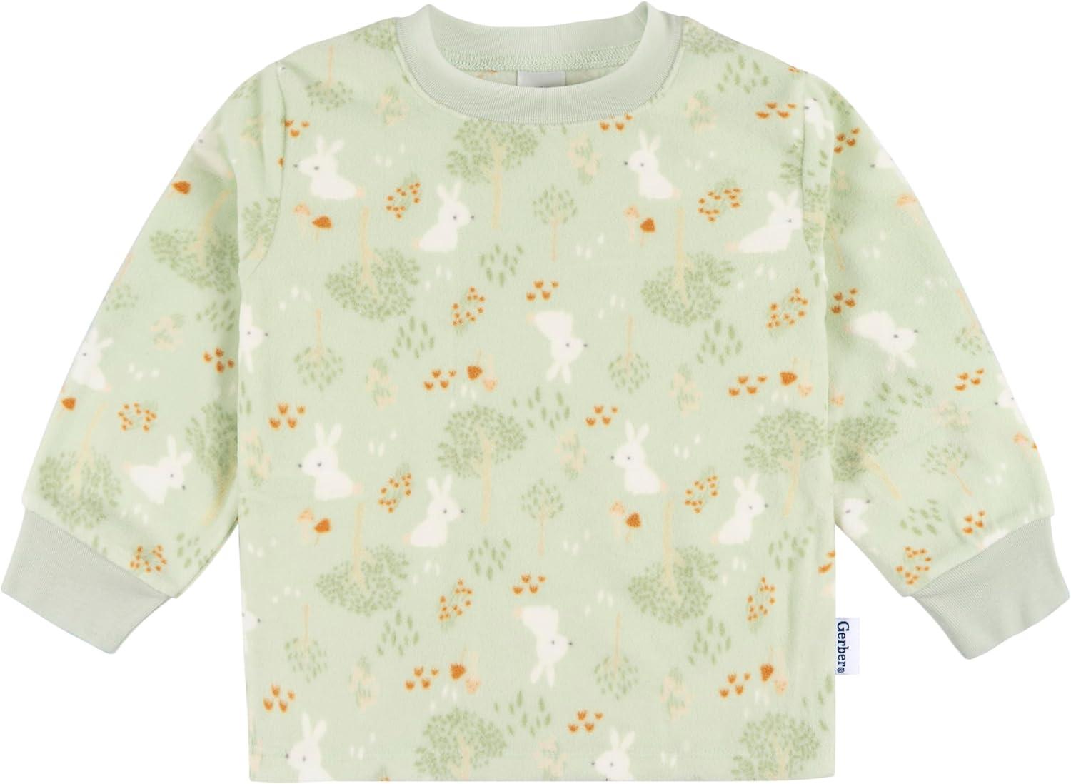 Give your little one the best in comfort with these microfleece pajamas designed to provide your baby or toddler with a soft and cozy night's sleep. Designed for cooler weather, this matching top and bottom set boasts comfort-stretch at the neck, wrists, waist, and ankles, ensuring easy movement. Complete with a delightful pattern and decorative twill tape, it's a charming choice for your little one's bedtime. This pajama set is made from flame resistant for child safety.