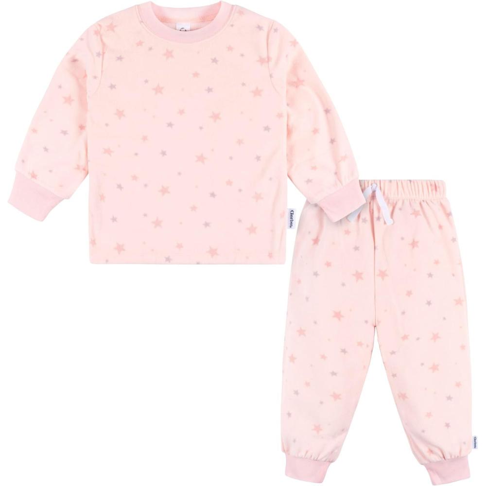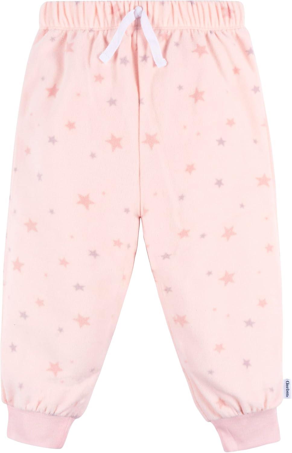 Gerber Baby Girls’ 2-Piece Fleece Pajamas Pants Set(Pink Stars)