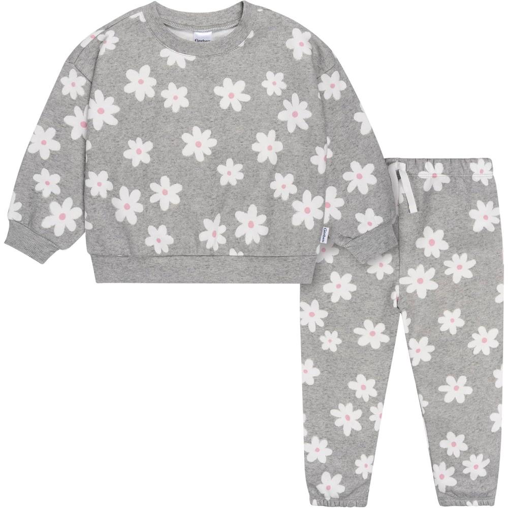 This cozy fleece outfit is all about softness and smiles! Made from super soft fleece and designed with ribbing at the neckline, wrists, hem, and ankles, it wraps your little one in a comfy, just-right fit. The pants feature a comfort stretch waistband and a cute faux drawstring, making changes quick and easy. Finished in a cool gray with bold white daisies, this playful look brings a fresh, cheerful twist to chilly-day dressing.