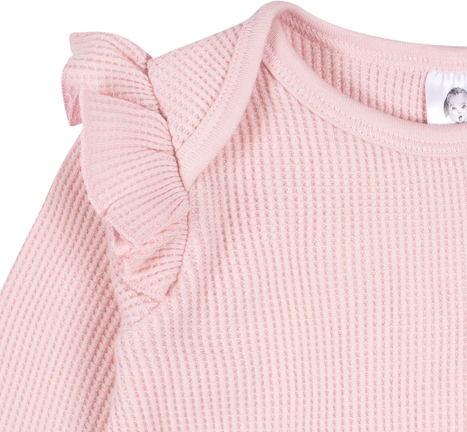 Gerber® extremely soft cotton/polyester long sleeve top and jogger pant sets are perfect for all day wear. High-quality, lightweight, breathable, durable mini waffle fabric with the perfect amount of stretch for active babies and toddlers. We had our essentials independently certified with STANDARD 100 by OEKO-TEX® so that you don’t have to worry about harmful substances in your baby’s wardrobe. Gerber quality, comfort, safety and value never goes out of style. Includes one lap shoulder long sleeve top and one jogger pant.