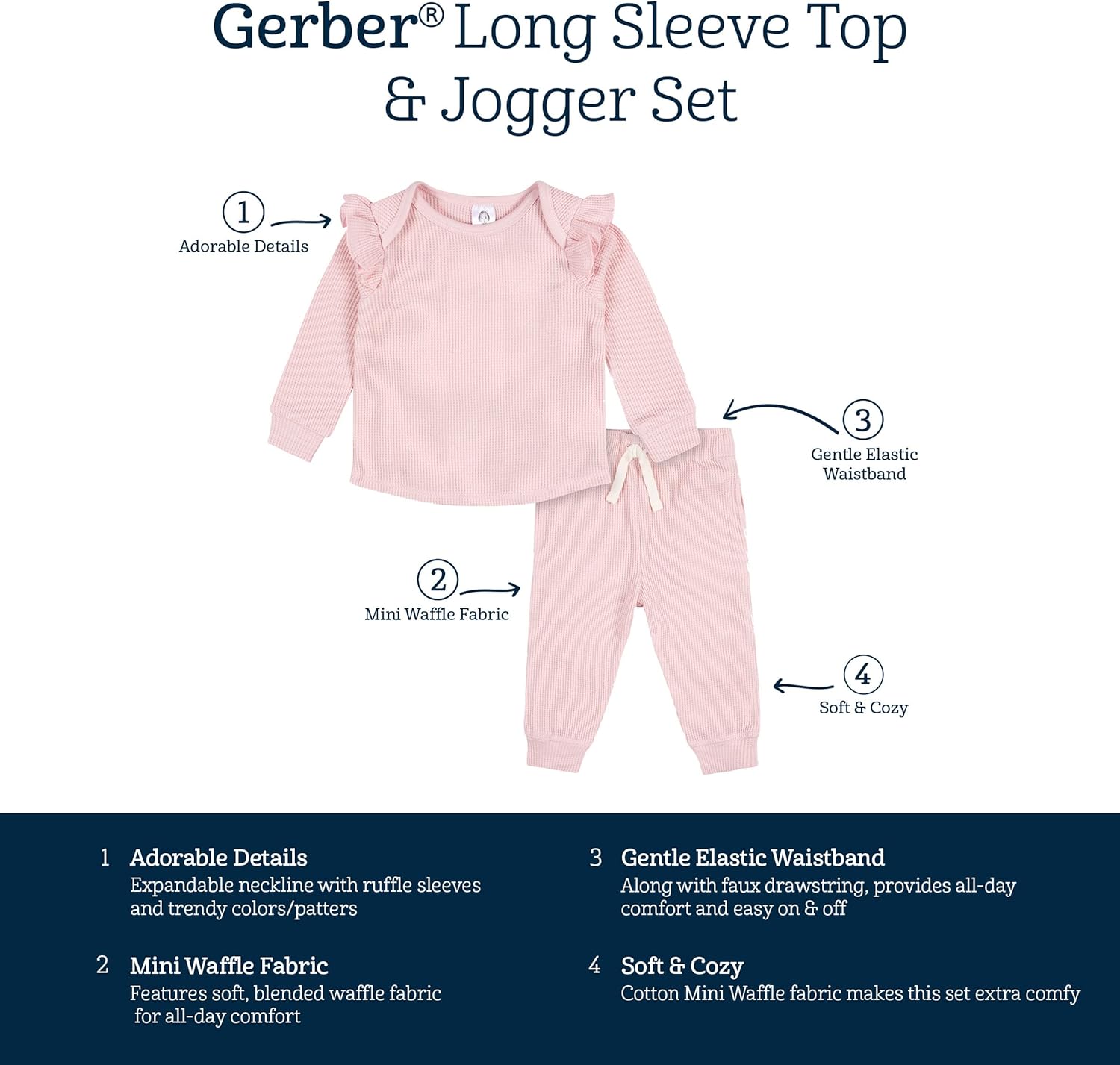 Gerber baby-girls 2-piece Long Sleeve Tee & Pull-on Jogger Set(Pink)