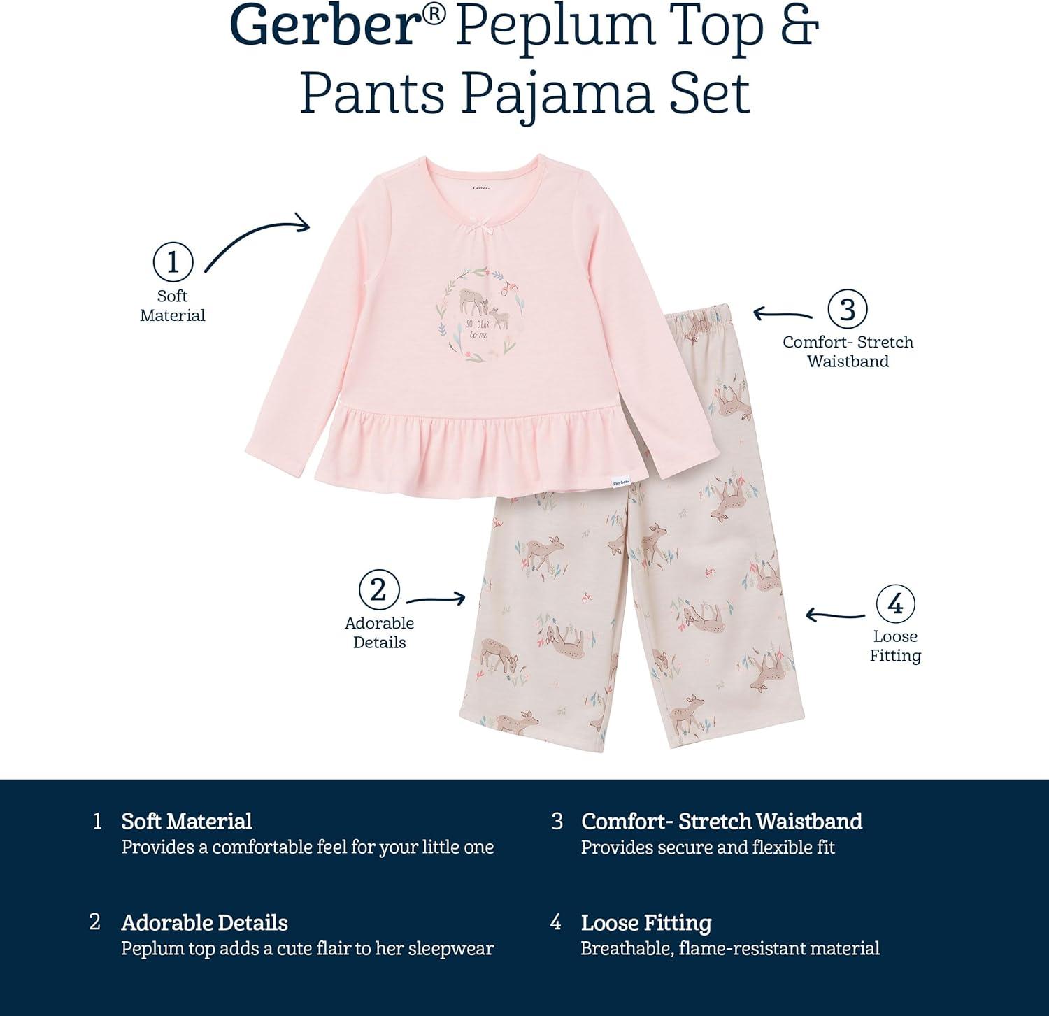 Gerber baby-girls 2-piece Pajama Set Top & Loose-fitting Pants(Deer)