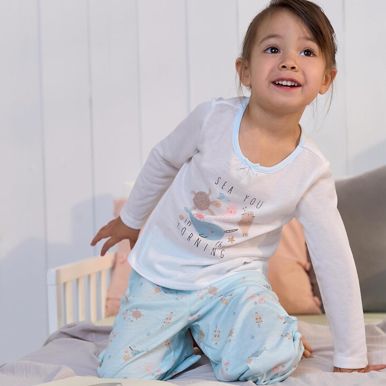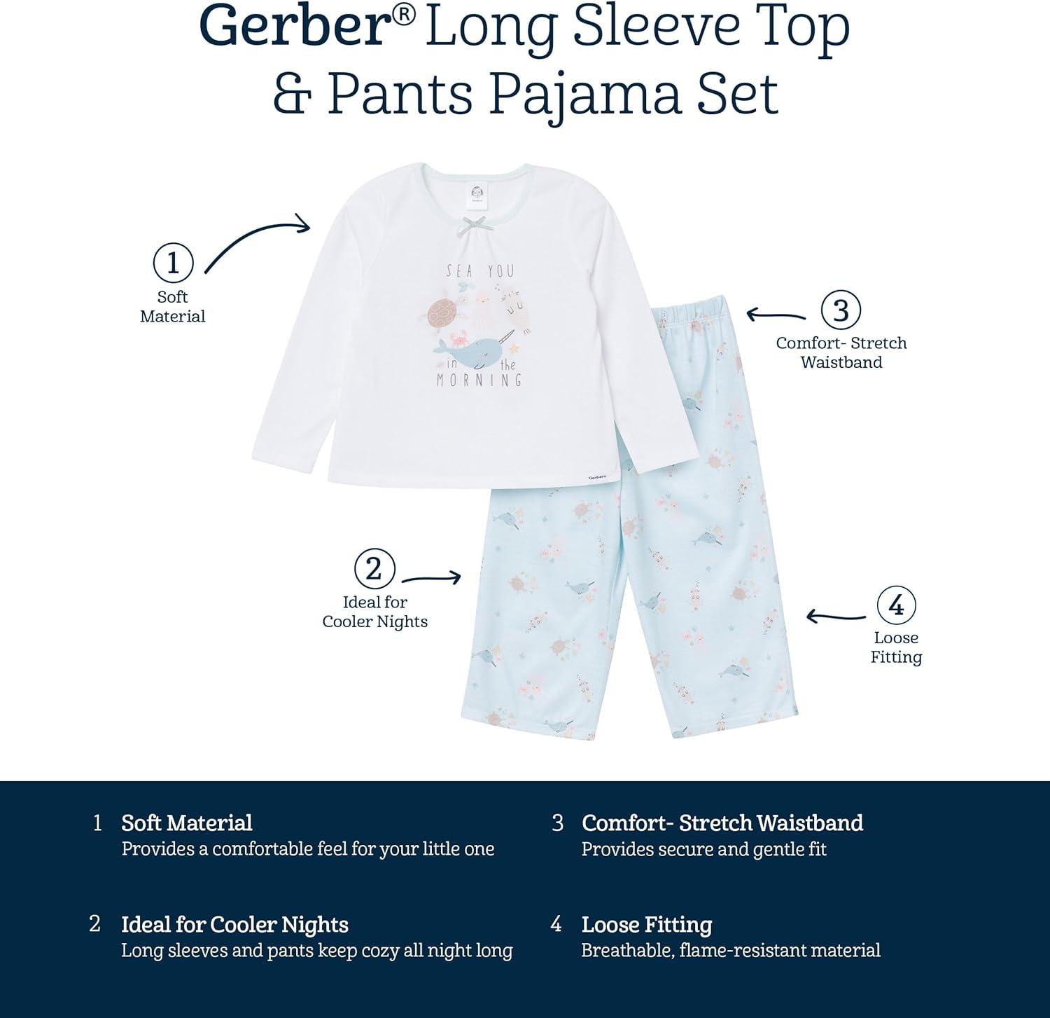 Your little one will love snuggling up in our cute and comfy toddler girl 2-piece pajama set! Made from soft and comfy fabric, these pajamas provide a perfect fit for pleasant dreams. The stretchy waistband on the pants ensures a gentle, snug fit, while the ribbed neck offers flexible wear. Ideal for cooler nights, this cozy set will quickly become a favorite, keeping her warm and content all night long. Flame resistant for child safety.
