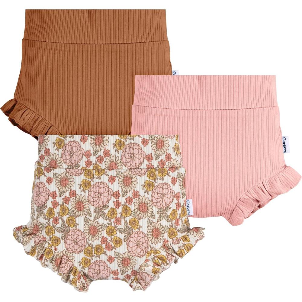 Gerber Baby-Girls 3-Pack Bubble Shorts(Brown/Pink/Garden Floral)