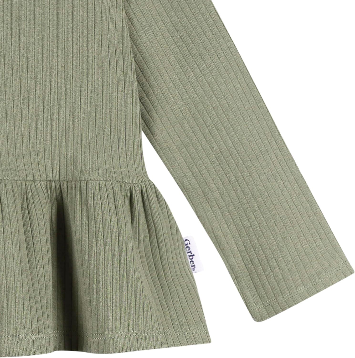 Gerber Baby Girls’ 3-Pack Long Sleeve Shirts(Green Pink & Coral)