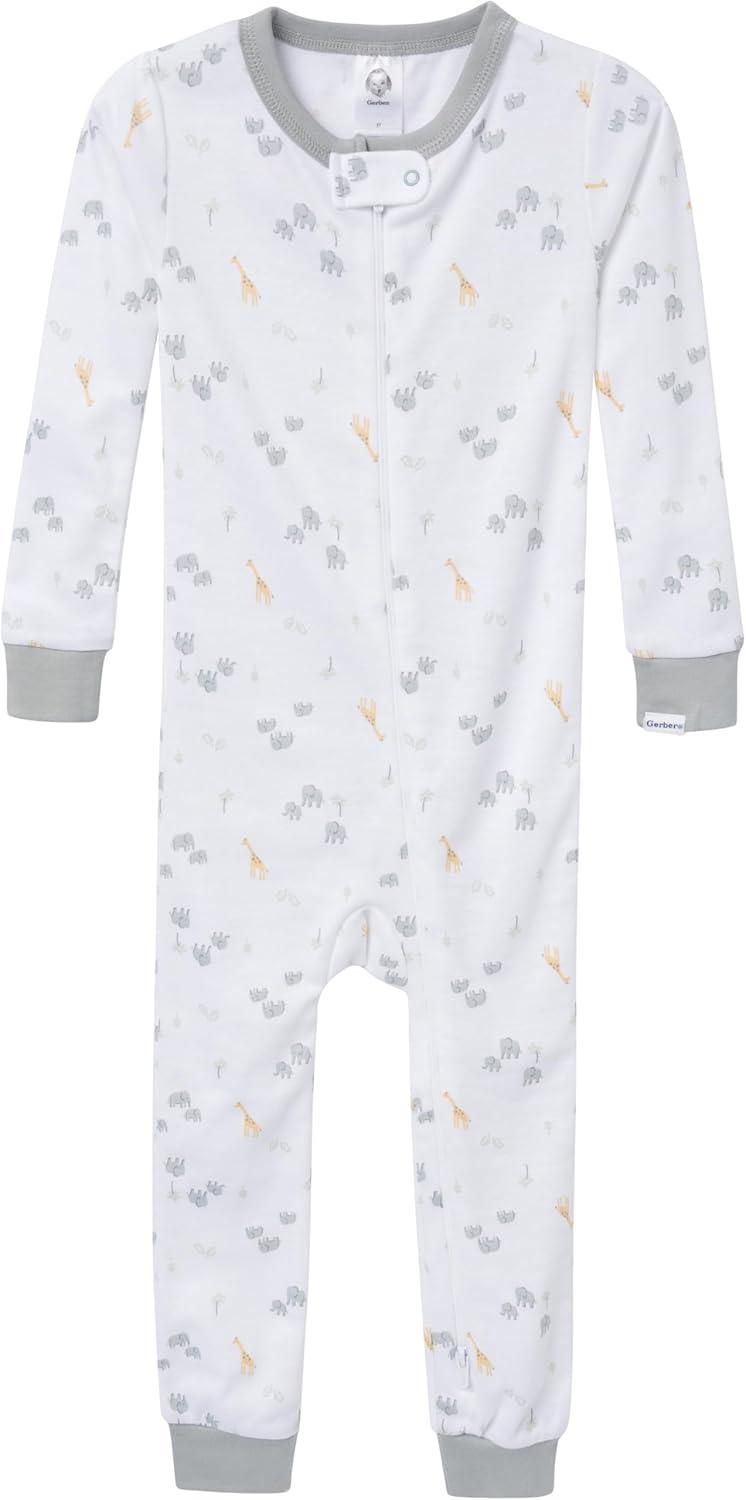 Gerber baby-girls 3-pack Snug Fit Footless One-piece Cotton Pajamas(Safari)