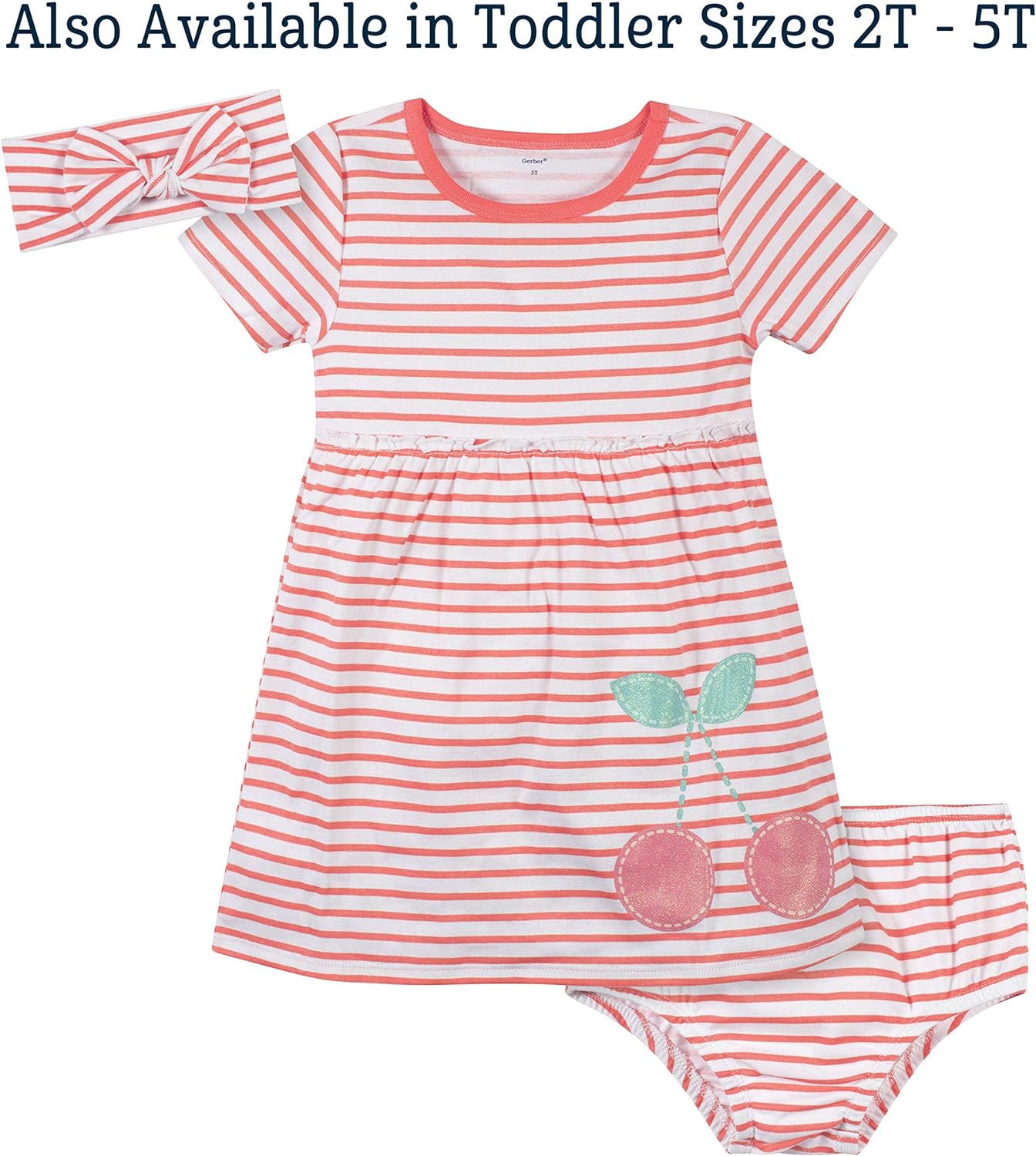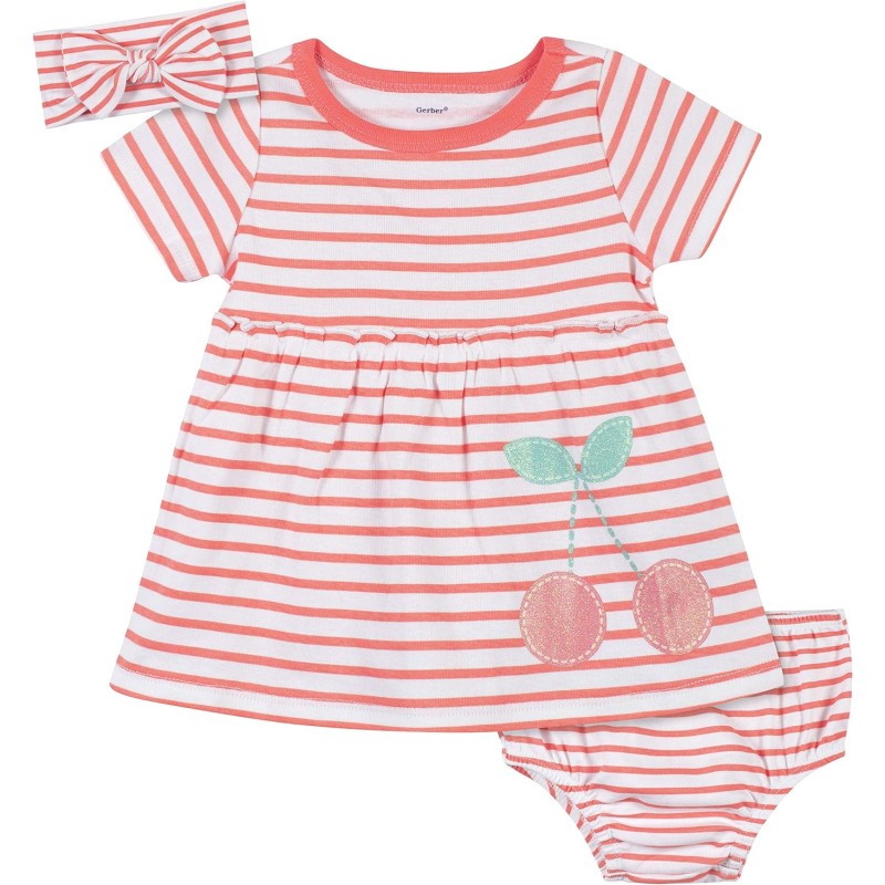 Gerber baby-girls 3-piece Dress, Diaper Cover and Headband Set(Red Cherry)
