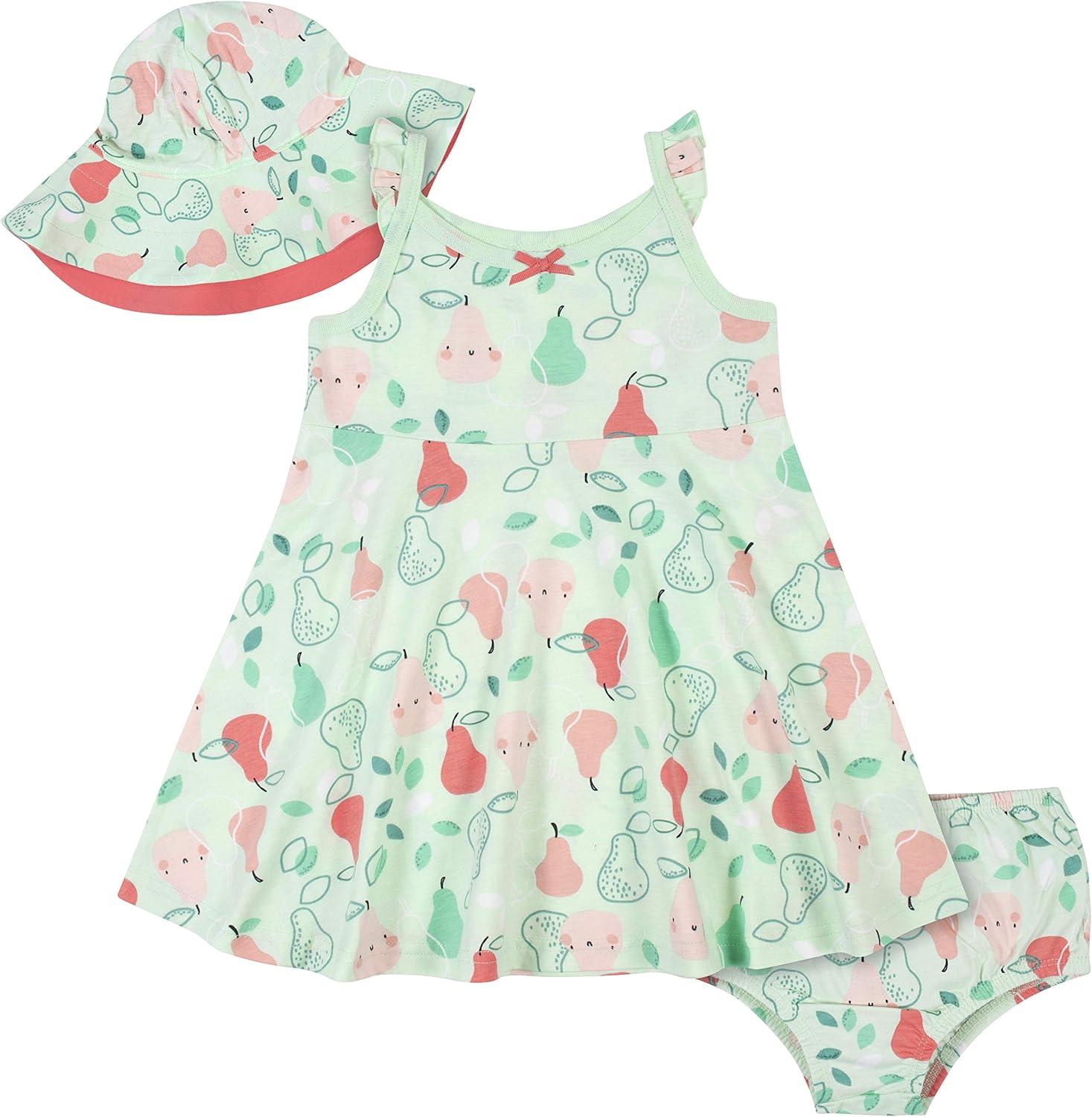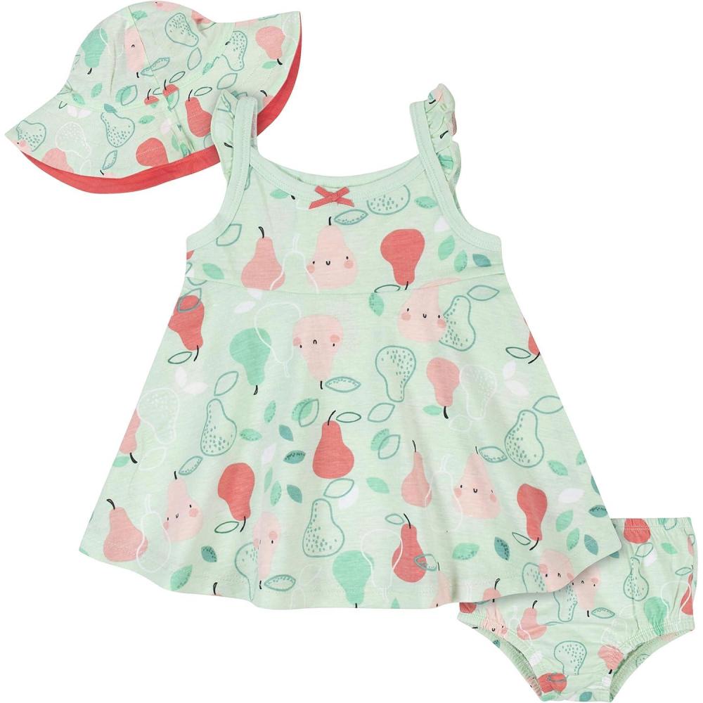 Gerber baby-girls 3-piece Sundress, Diaper Cover and Hat Set(Green Pear)