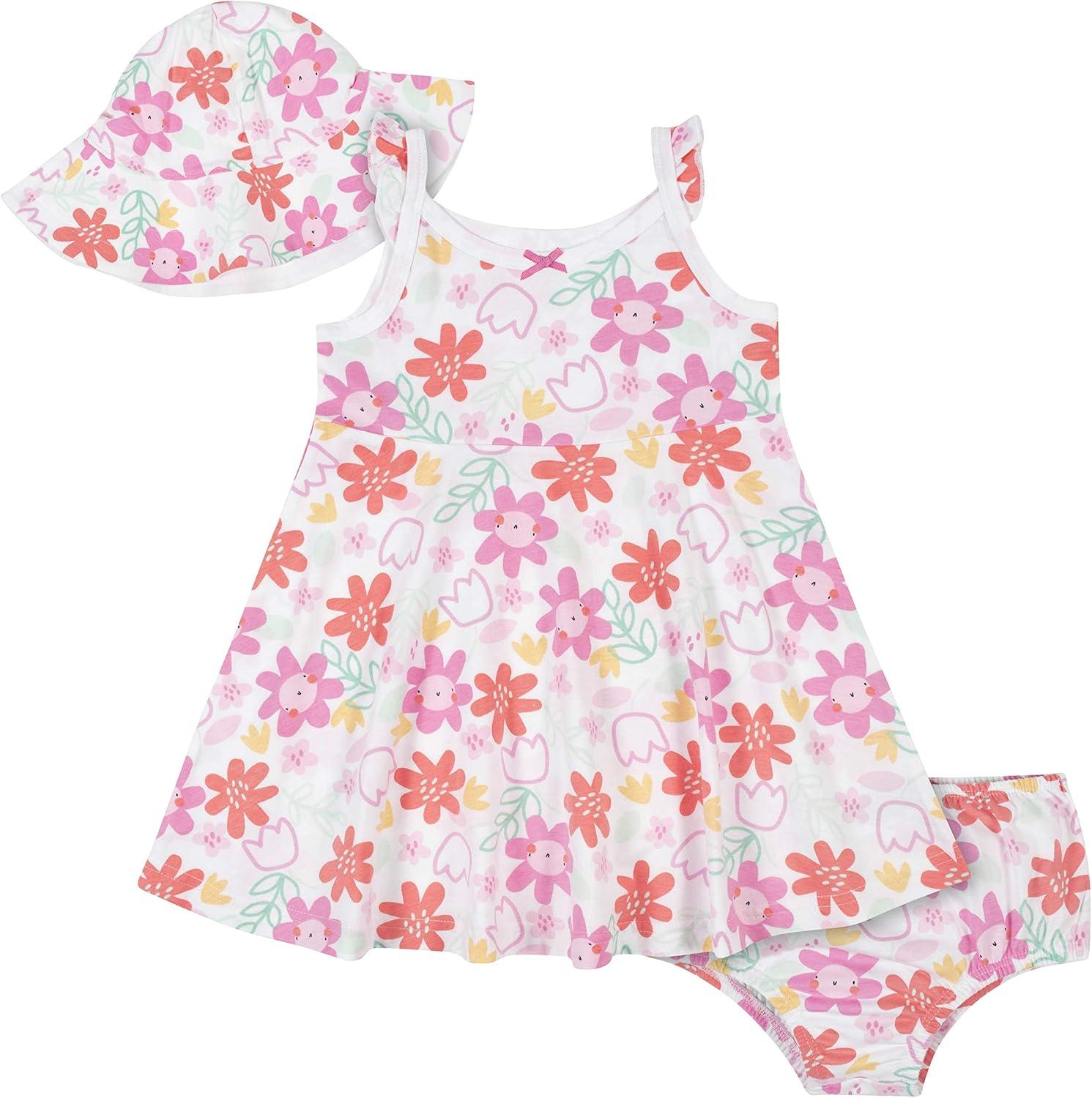 Gerber baby-girls 3-piece Sundress, Diaper Cover and Hat Set(White and Pink Garden)