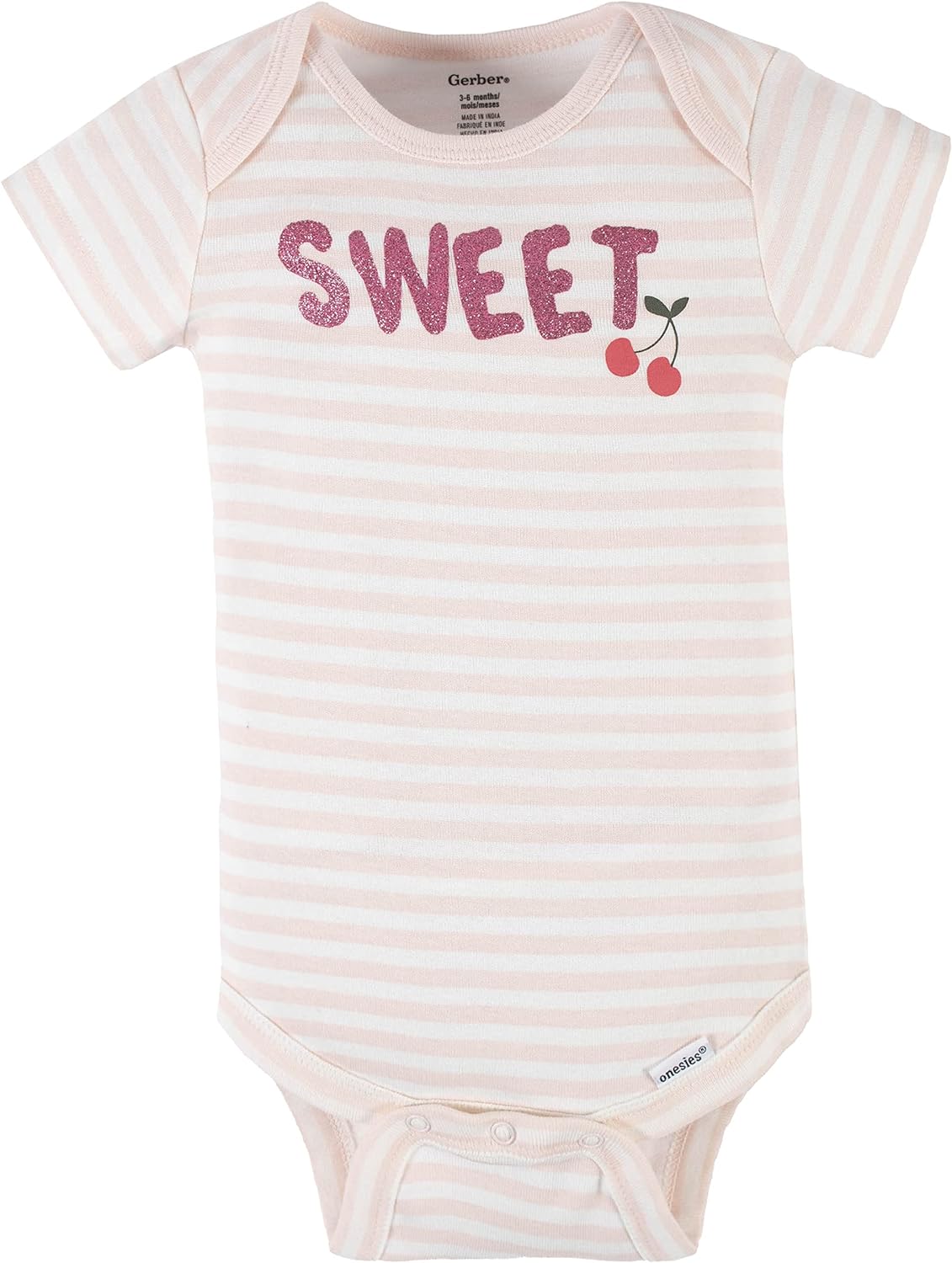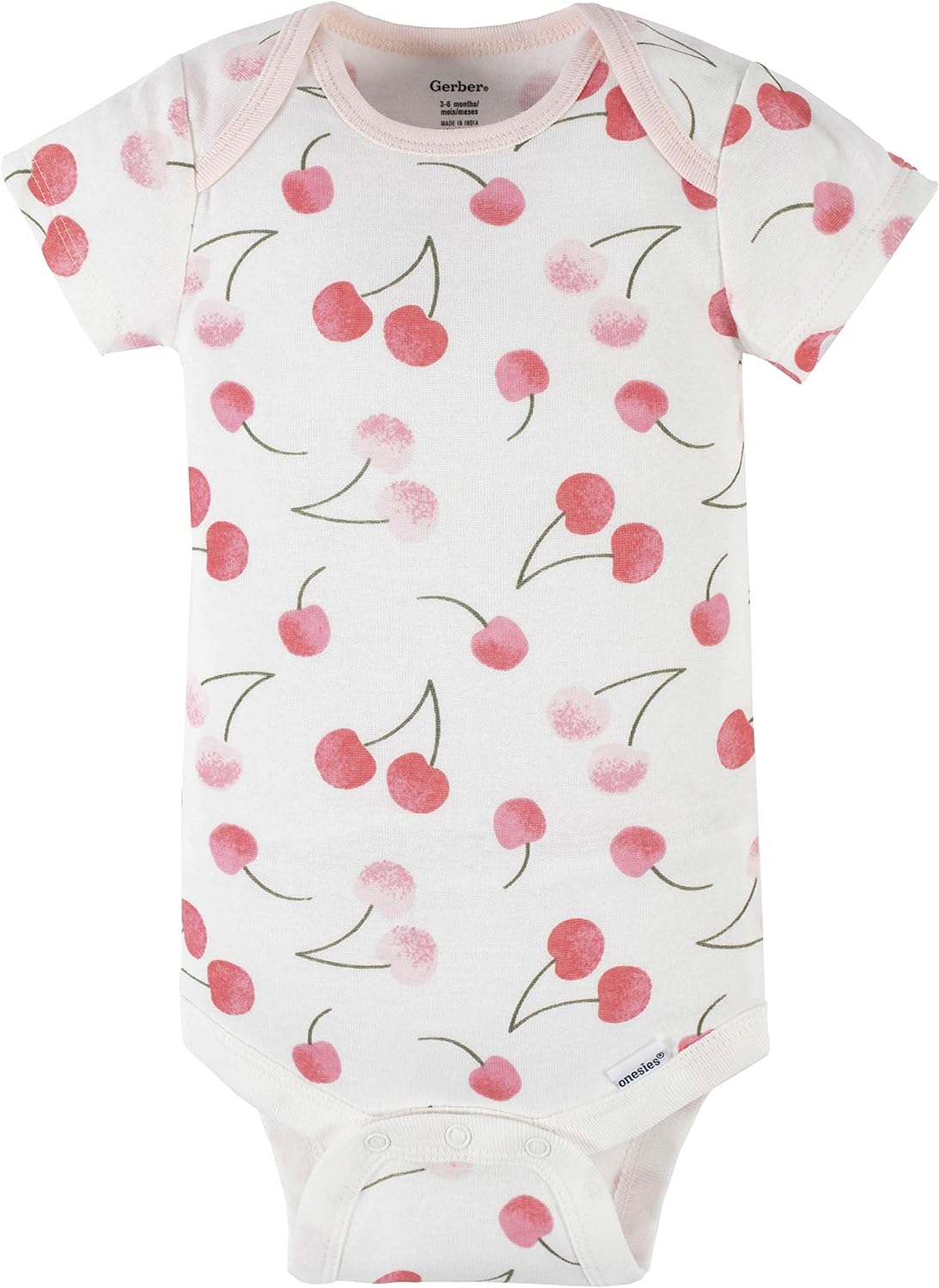 Gerber baby-girls 4-pack Short Sleeve Onesies Bodysuits(Pink Cherries)