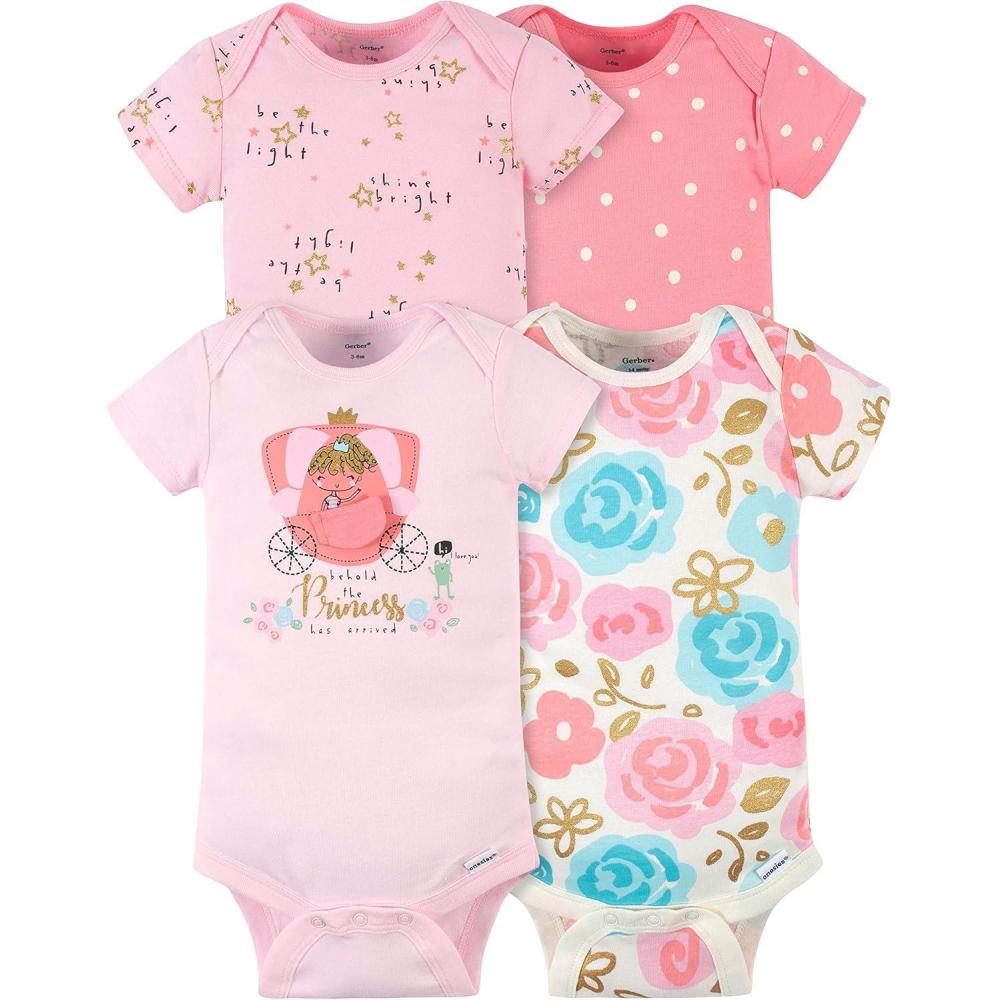 Gerber baby-girls 4-pack Short Sleeve Onesies Bodysuits(Princess Pink)