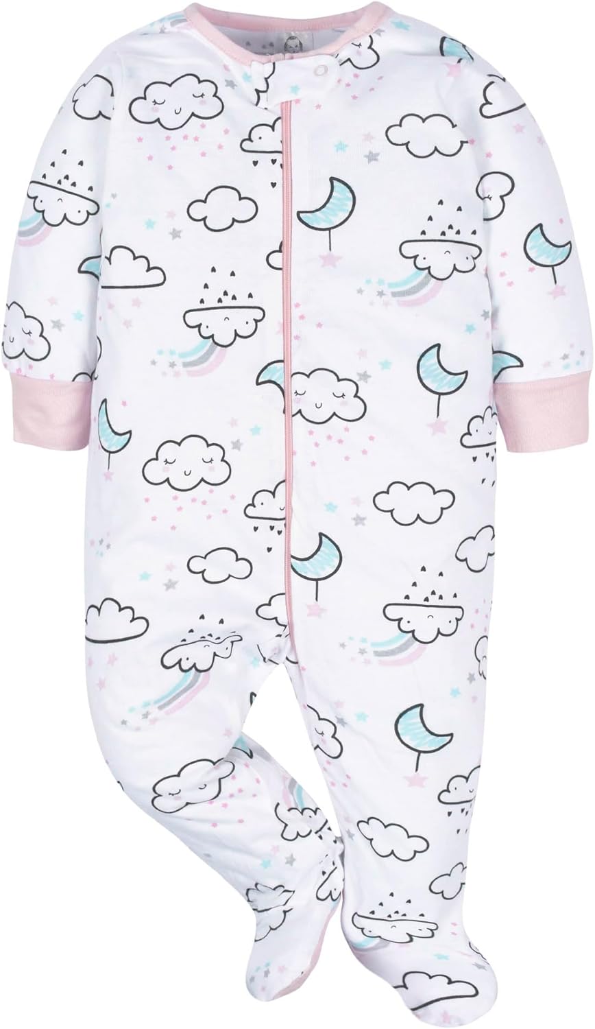 Gerber baby-girls 4 Pack Sleep ‘N Play Footie(Cloudy)