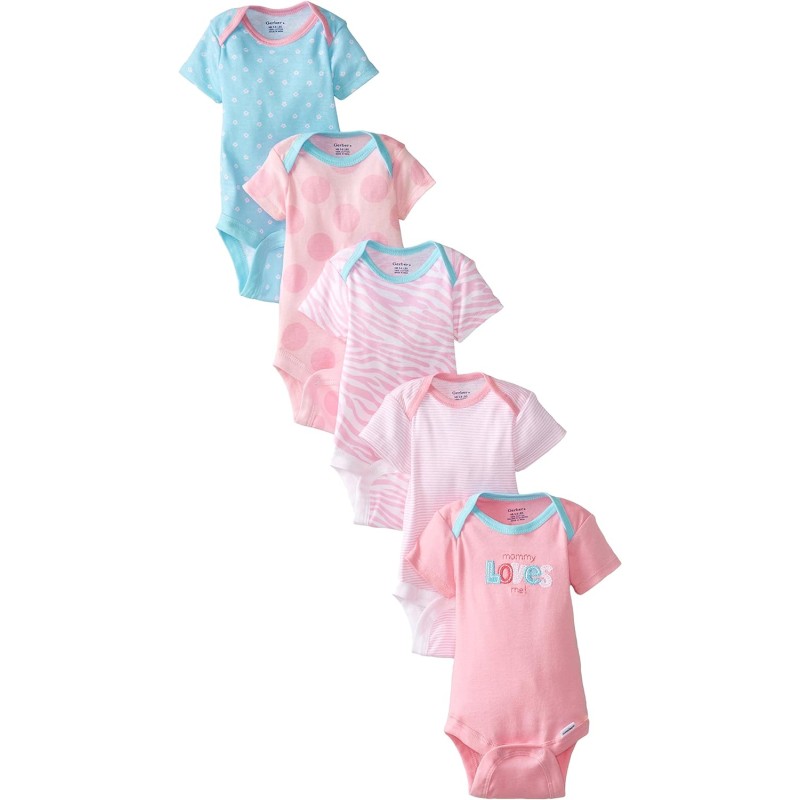 Gerber baby-girls 5-pack Short Sleeve Variety Onesies Bodysuits(Blue Zebra)