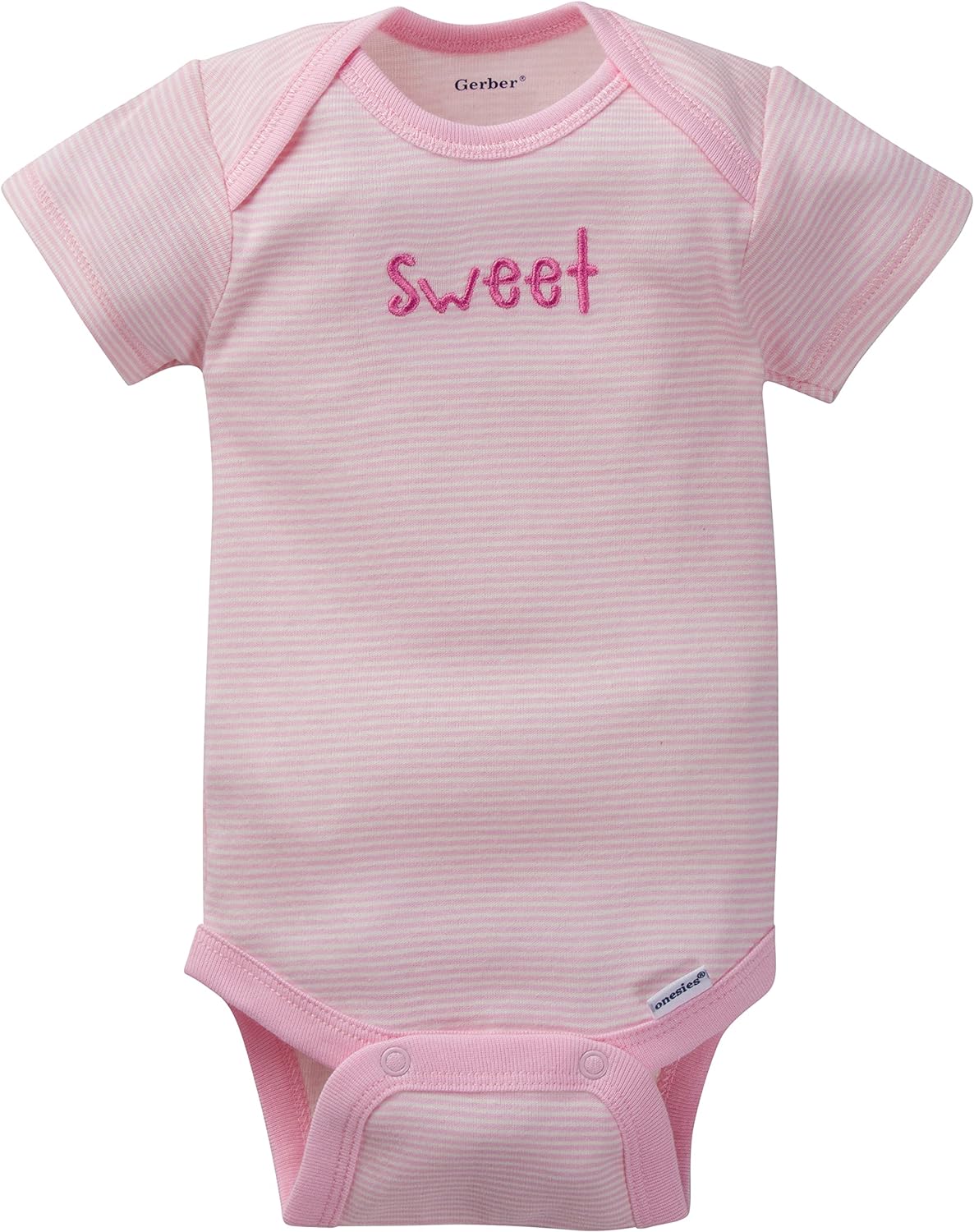 Your little girl will start the day looking her best dressed in one of these Gerber Onesies brand short sleeve bodysuits! Moms and dads will appreciate the higher-in-the-front bottom nickel-free snaps closure that makes for fast and easy diaper changes. 100% cotton rib for breathability and comfort. Mix and match with your favorite bottoms to create a complete look. An essential item for new parents, great for gift giving.