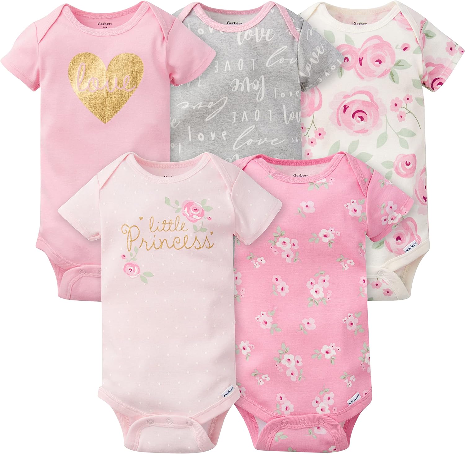 Gerber baby-girls 5-pack Short Sleeve Variety Onesies Bodysuits(Floral Pink)