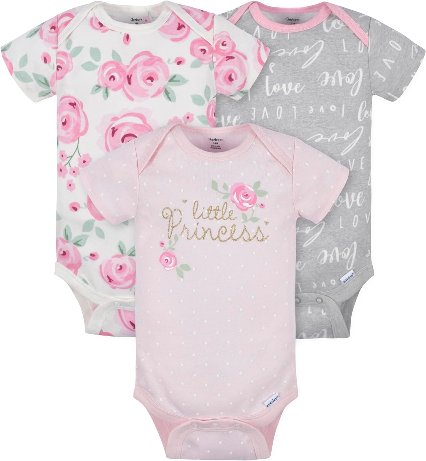 Gerber baby-girls 5-pack Short Sleeve Variety Onesies Bodysuits(Little Princess3)