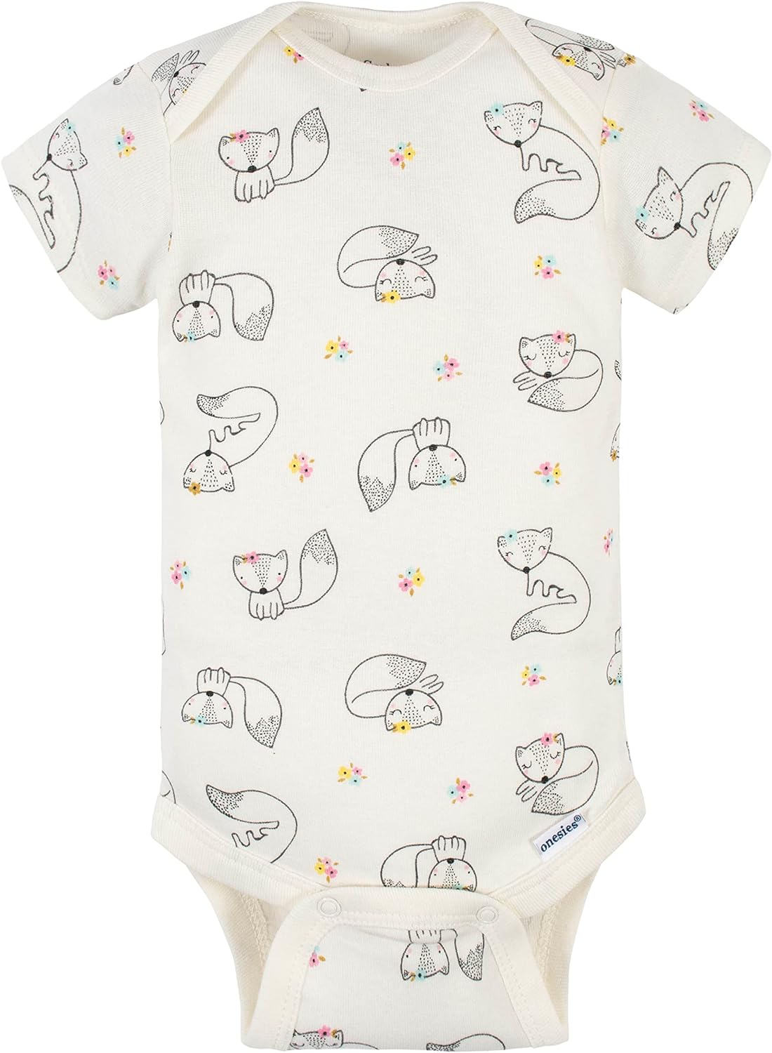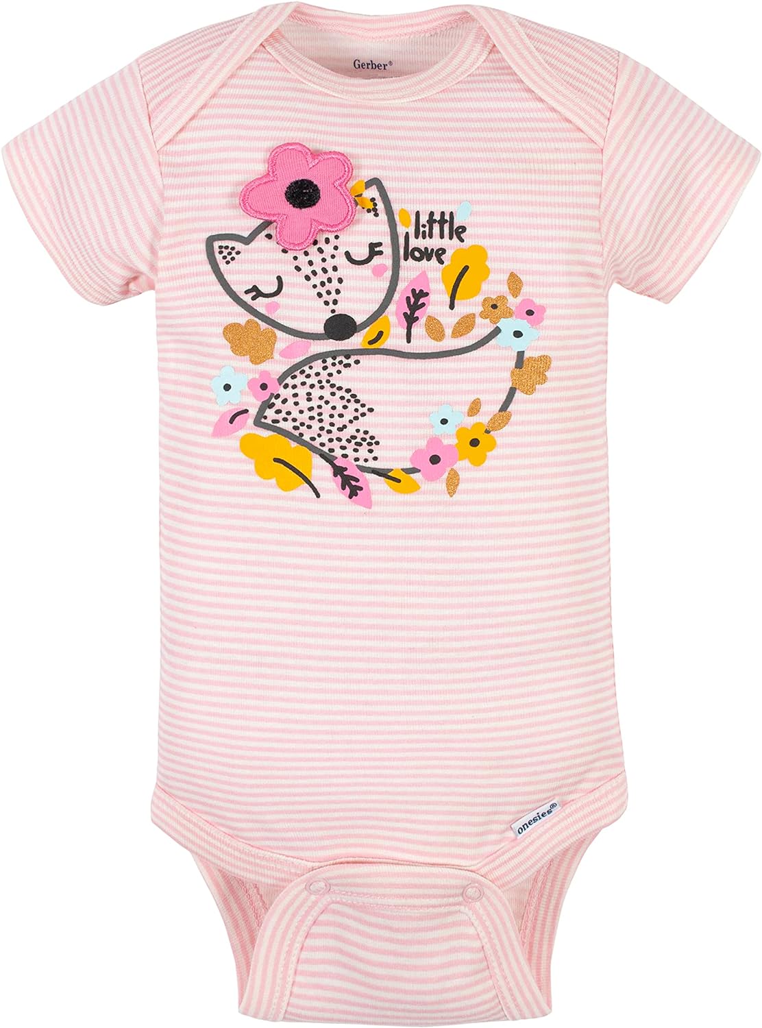 Gerber baby-girls 5-pack Short Sleeve Variety Onesies Bodysuits(Pink Fox)