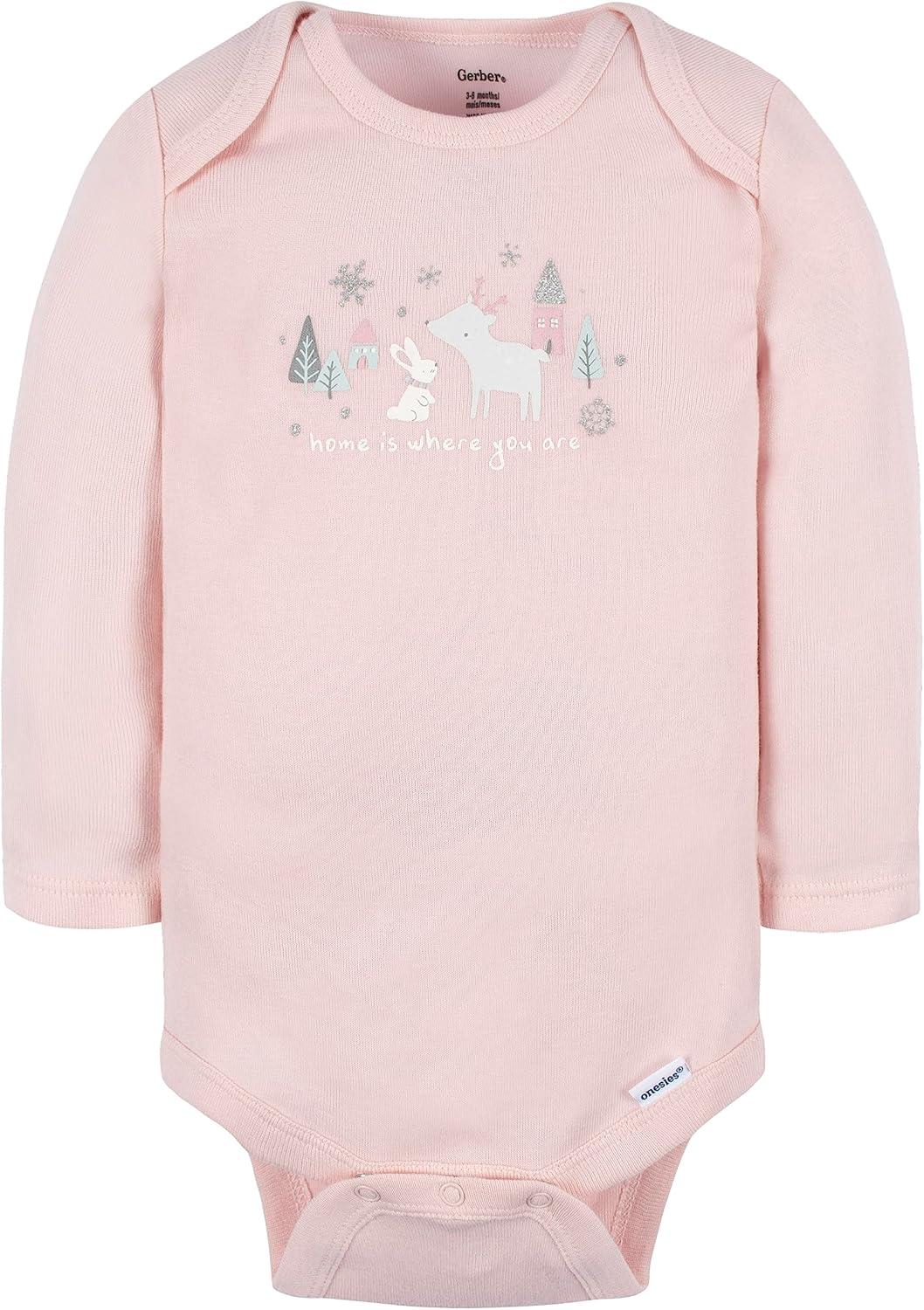 Gerber Baby Girls’ 6-Pack Long-Sleeve Onesies Bodysuits(Home)