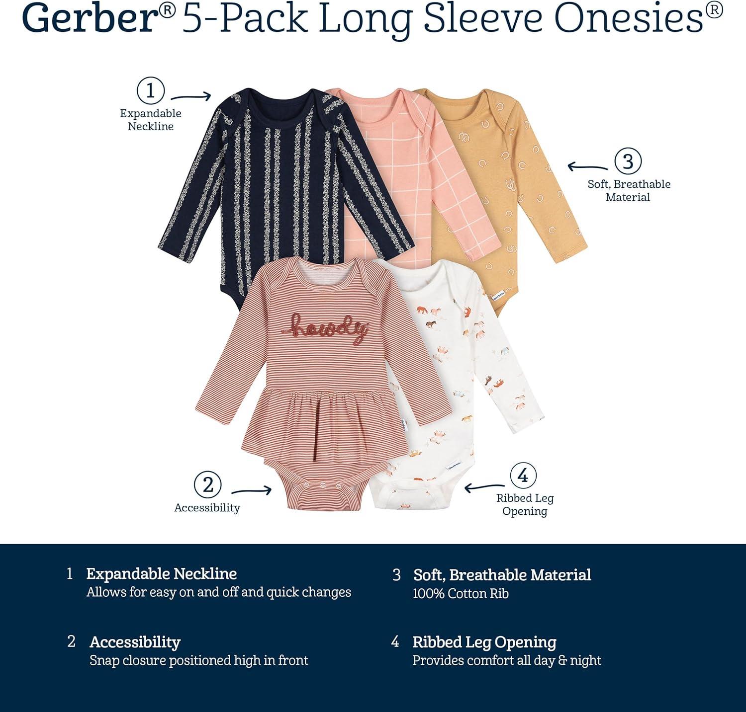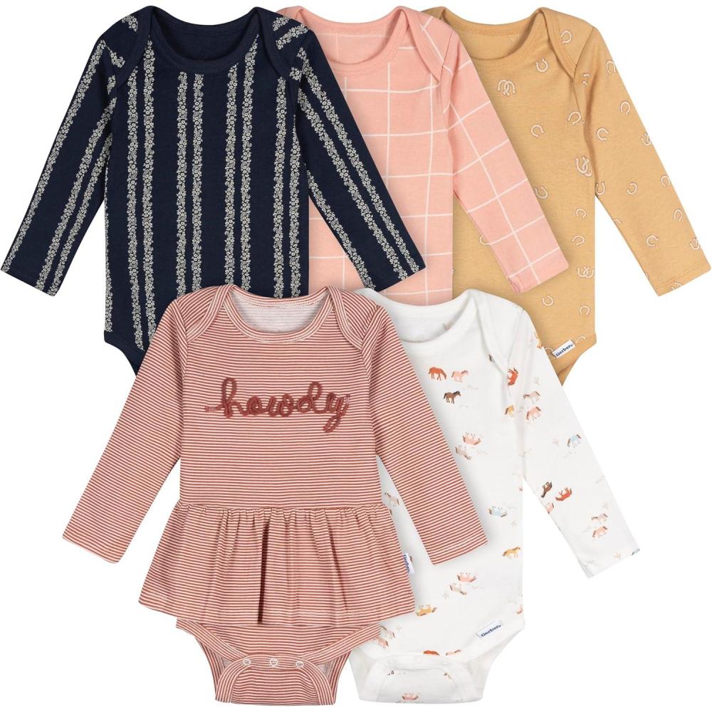Gerber Baby Girls’ 6-Pack Long-Sleeve Onesies Bodysuits(Horses)