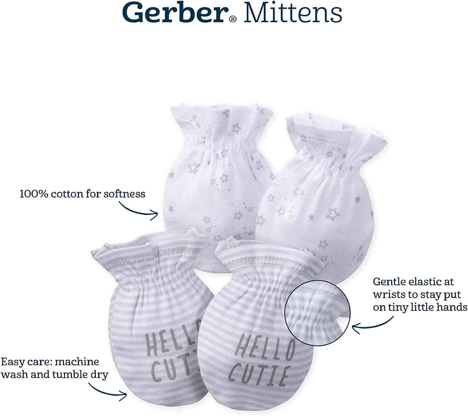 Includes twelve pairs of baby mittens