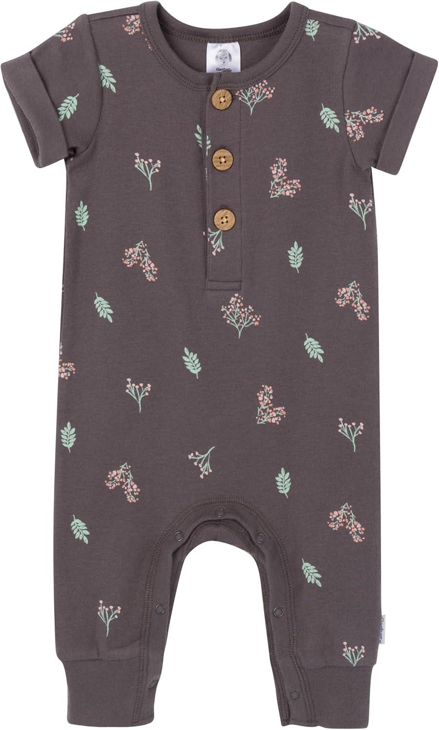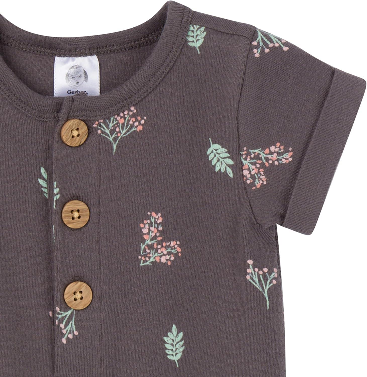 Gerber baby-girls Baby Boys 2-pack Long Leg Romper(Floral)