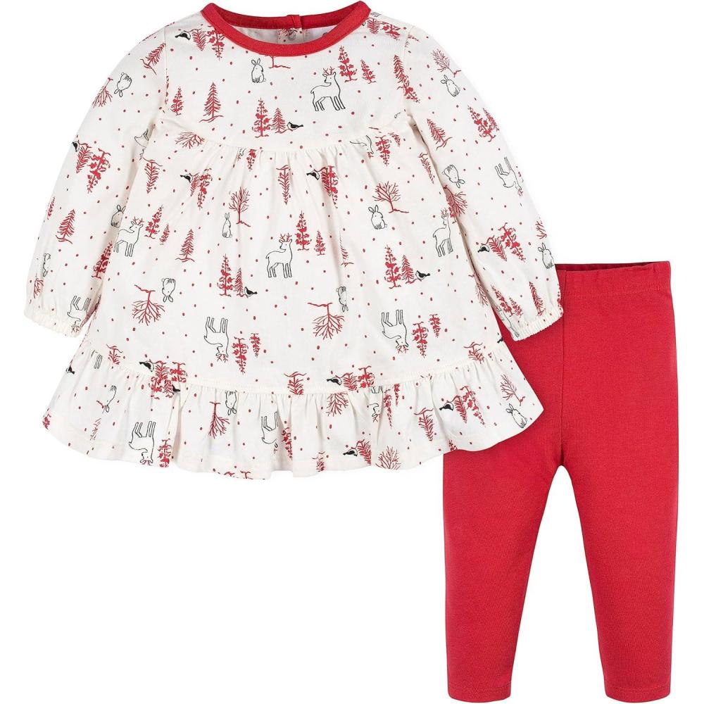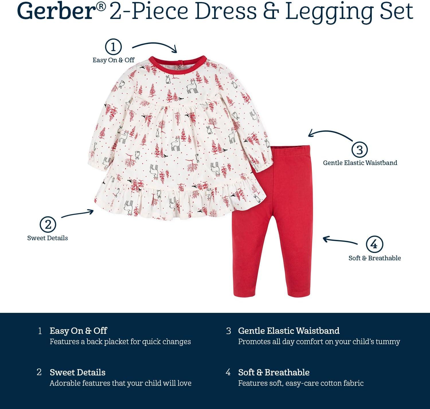 Gerber baby-girls Baby Girls’ 2-piece Dress & Legging Set(Red White Winter Scene)