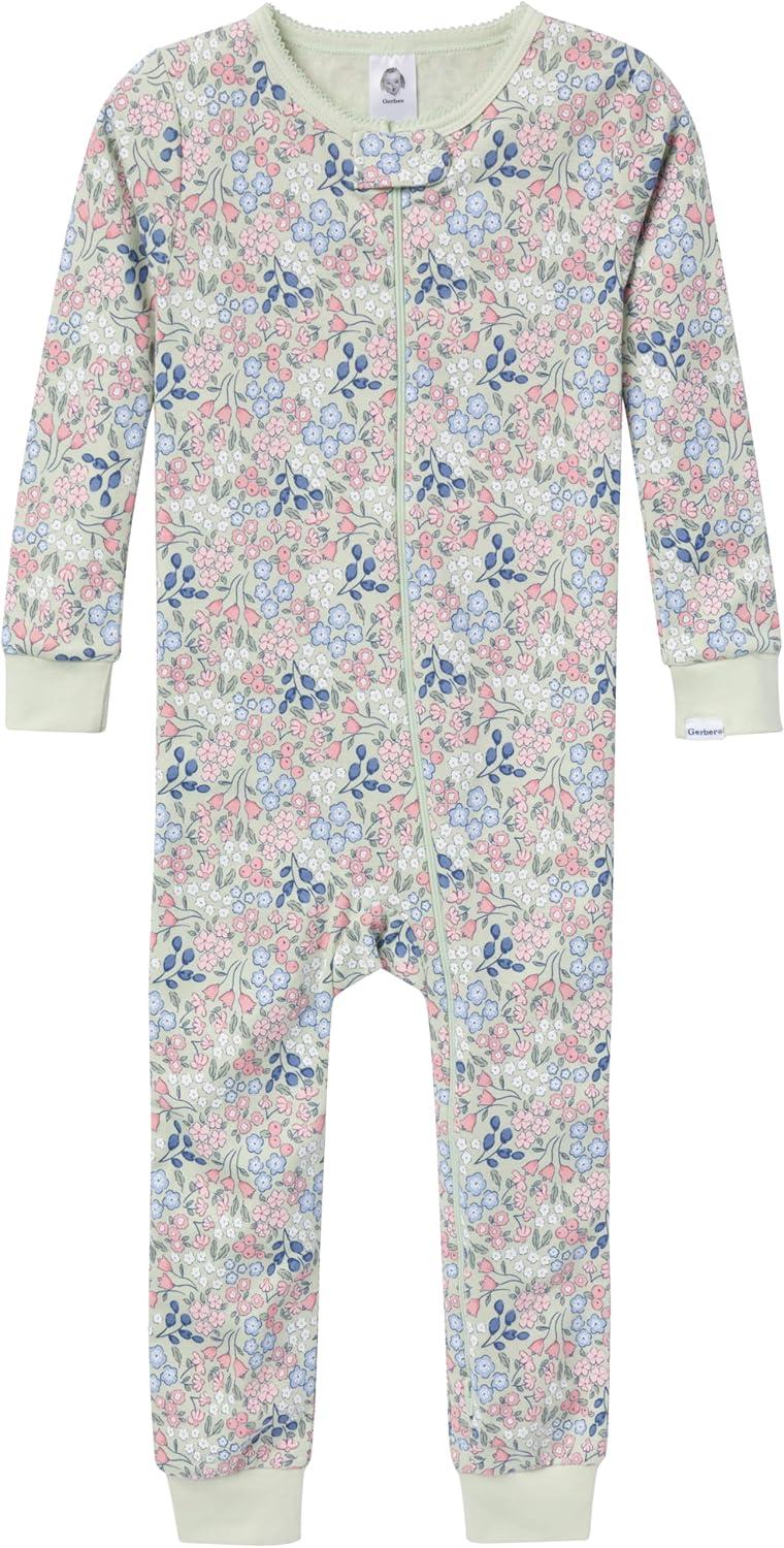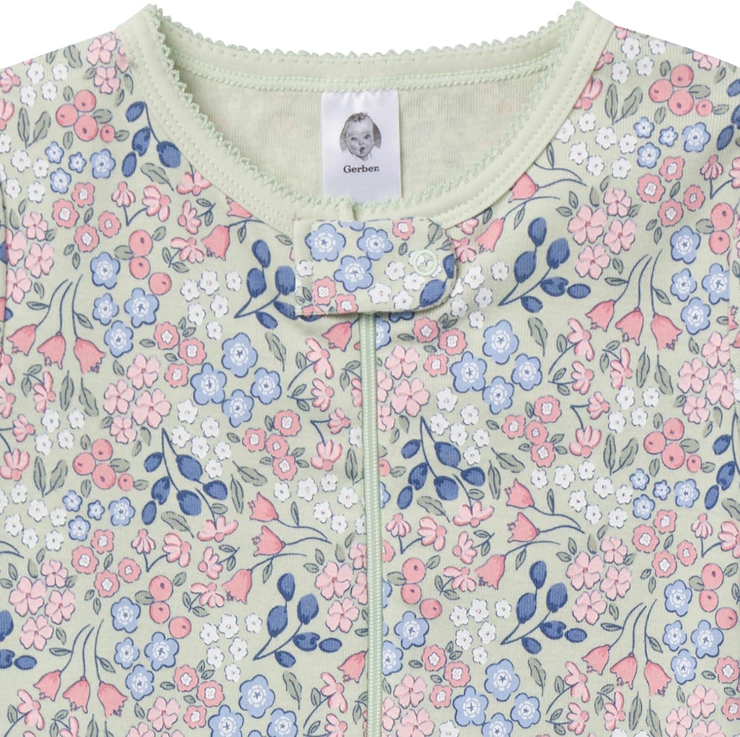 Gerber Baby Girls Baby-girls 3-pack Snug Fit Footless One-piece Cotton Pajamas(Ditsy Floral)