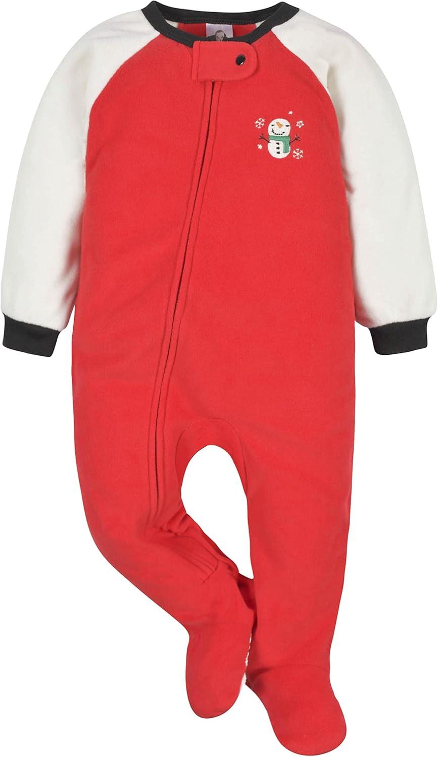 Gerber baby-girls Baby Girls Fleece Footed Pajamas 2-pack(Red Black Snowman)