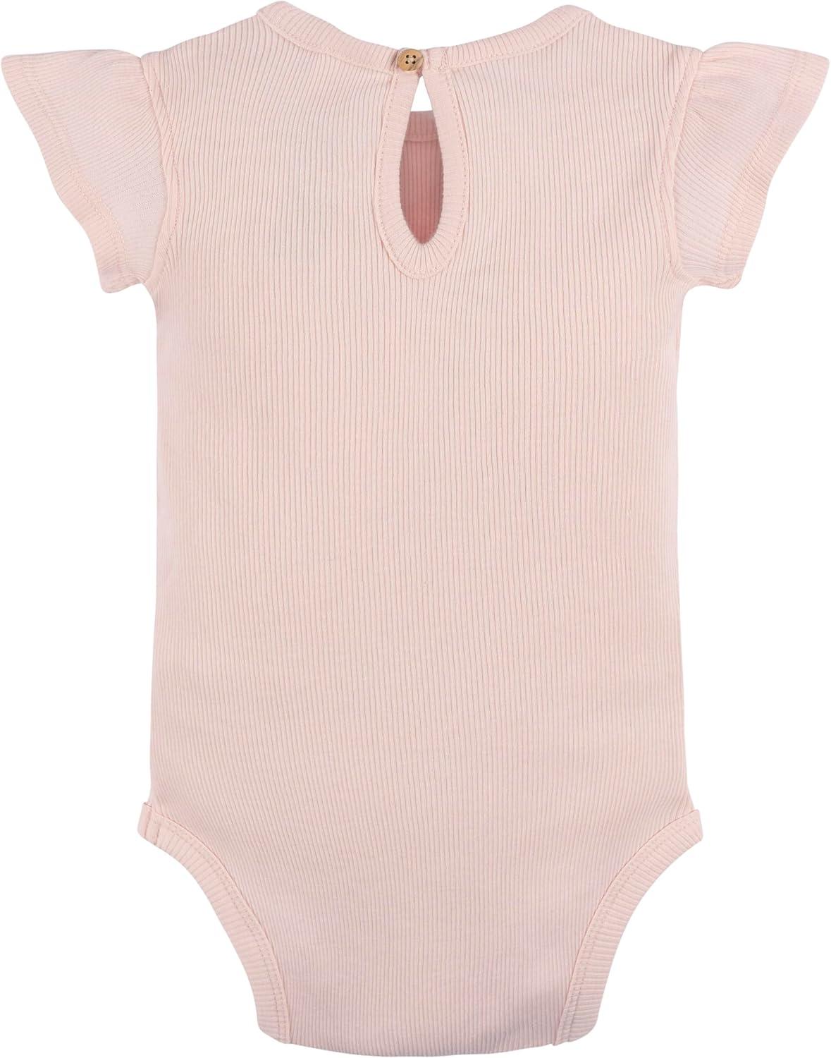 Dress your little one in style with this charming baby girl bodysuit and shorts set crafted from 100% cotton for a soft, gentle feel on sensitive skin. The bodysuit features vertical ribbing for a naturally stretchy, flexible fit, while convenient leg snaps make diaper changes quick and easy. Faux wood buttons add a touch of classic elegance to the bodysuit, creating a polished look. Paired with matching shorts that have a comfort-stretch waistband for a secure, comfy fit, this set is perfect for everyday wear with a stylish twist. Our essentials have been independently certified with STANDARD 100 by OEKO-TEX® so that you don’t have to worry about harmful substances in your toddler's wardrobe. Includes one bodysuit with matching shorts.