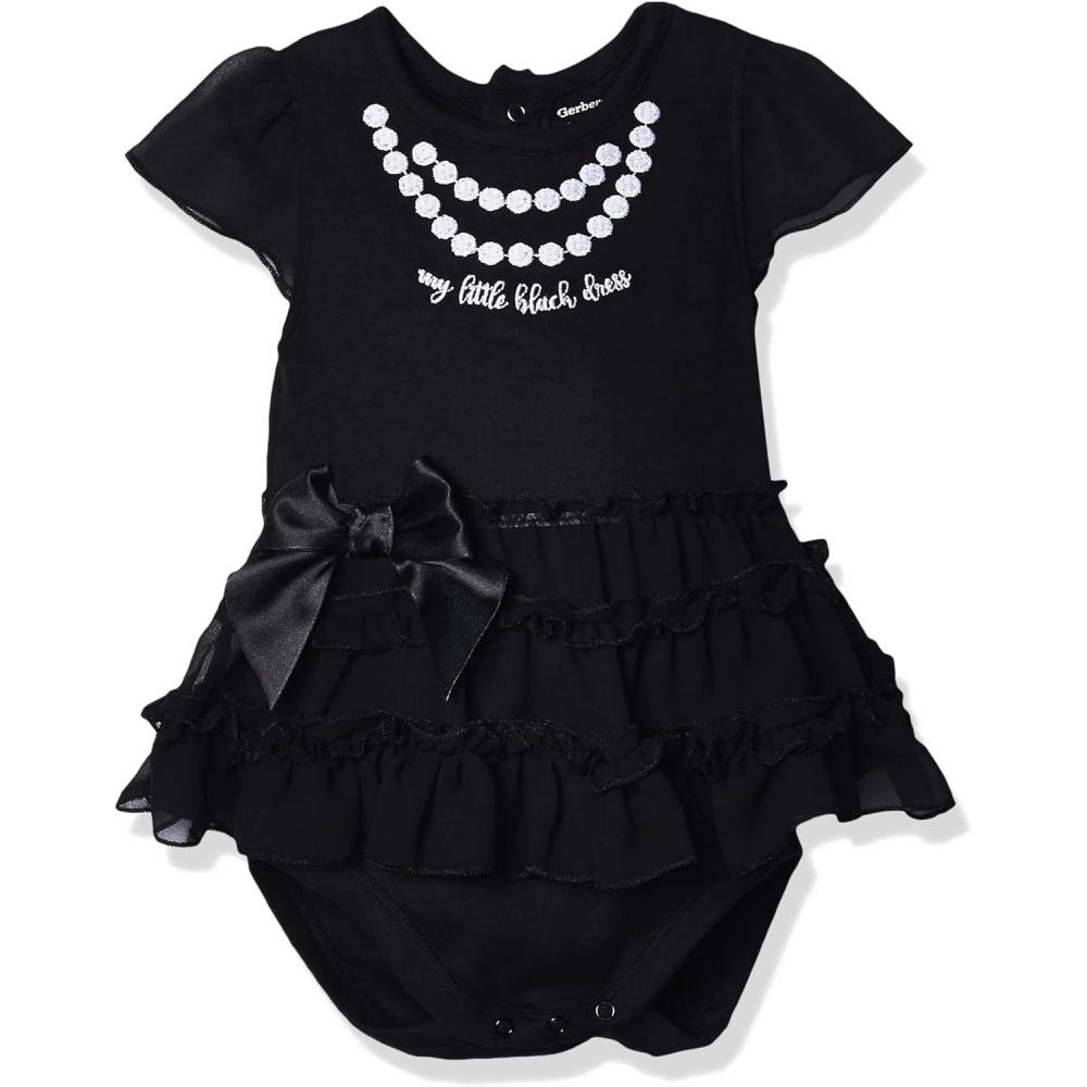 This baby girls’ “Little Black Dress” bodysuit is perfect for any special occasion! This adorable bodysuit is made of cotton interlock, a soft and breathable fabric that’s perfect for baby’s delicate skin. The bodysuit features a back placket to help the garment slip over baby’s head. The baby girl bodysuit also features bottom snaps to keep diaper changes quick and simple. This bodysuit provides baby with supreme comfort that will last all-day long. This adorable skirted bodysuit is perfect for any special occasion whether it be a holiday, family gathering, or any other celebration! She’ll love how comfortable she feels and you’ll love how adorable she looks. The bodysuit has a sweet skirted tutu made of chiffon as well as a satin bow that gives the outfit a sassy flair. The flutter sleeves of this bodysuit are precious. This baby girls’ tutu bodysuit is a wonderful outfit for her to wear during a photo shoot. You’ll love snapping photos of her in this adorable outfit with your phone, but it’s also a great outfit for more professional shots! Capture frame-worthy photographs of her in this sweet skirted bodysuit that you will treasure forever. Give this skirted tutu bodysuit to any baby girl you know and love! It’s the perfect gift to bring to a baby shower that will delight any parents-to-be. This bodysuit is as easy to clean and care for as it is adorable. This baby girls’ outfit is machine washable as well as machine dryable for your convenience. Gerber understands that busy parents don’t have time to wash clothing with complicated care instructions. This baby girls’ outfit is adorable worn all on its own but is also great to pair with baby girl headbands, baby girl socks, or baby girl hair bows. This outfit is sure to turn heads and become a family favorite! Gerber provides high-quality products that are easy and convenient for parents as well as cute and comfortable for baby. Gerber provides safe products that parents can trust.