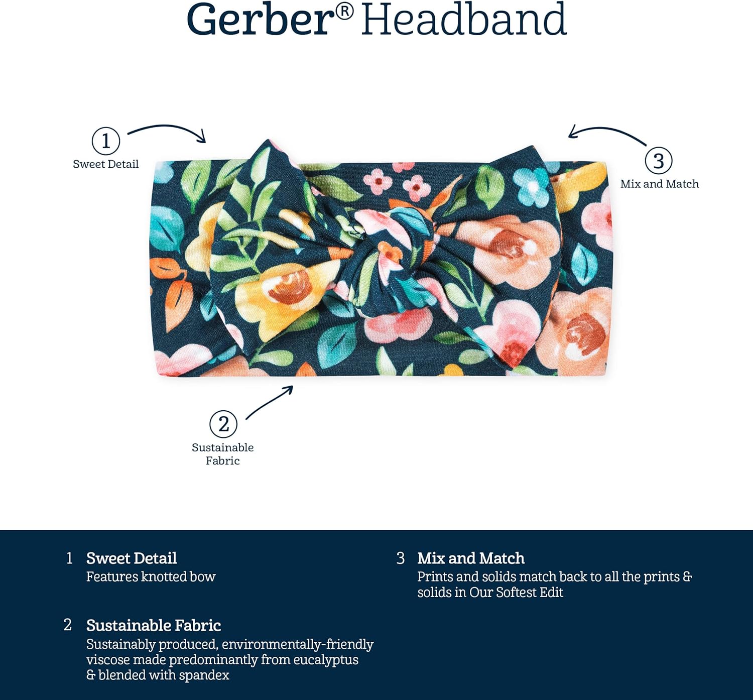 Gerber Baby Girls’ Buttery Soft Headband with Bow with Viscose Made from Eucalyptus(Midnight Floral)
