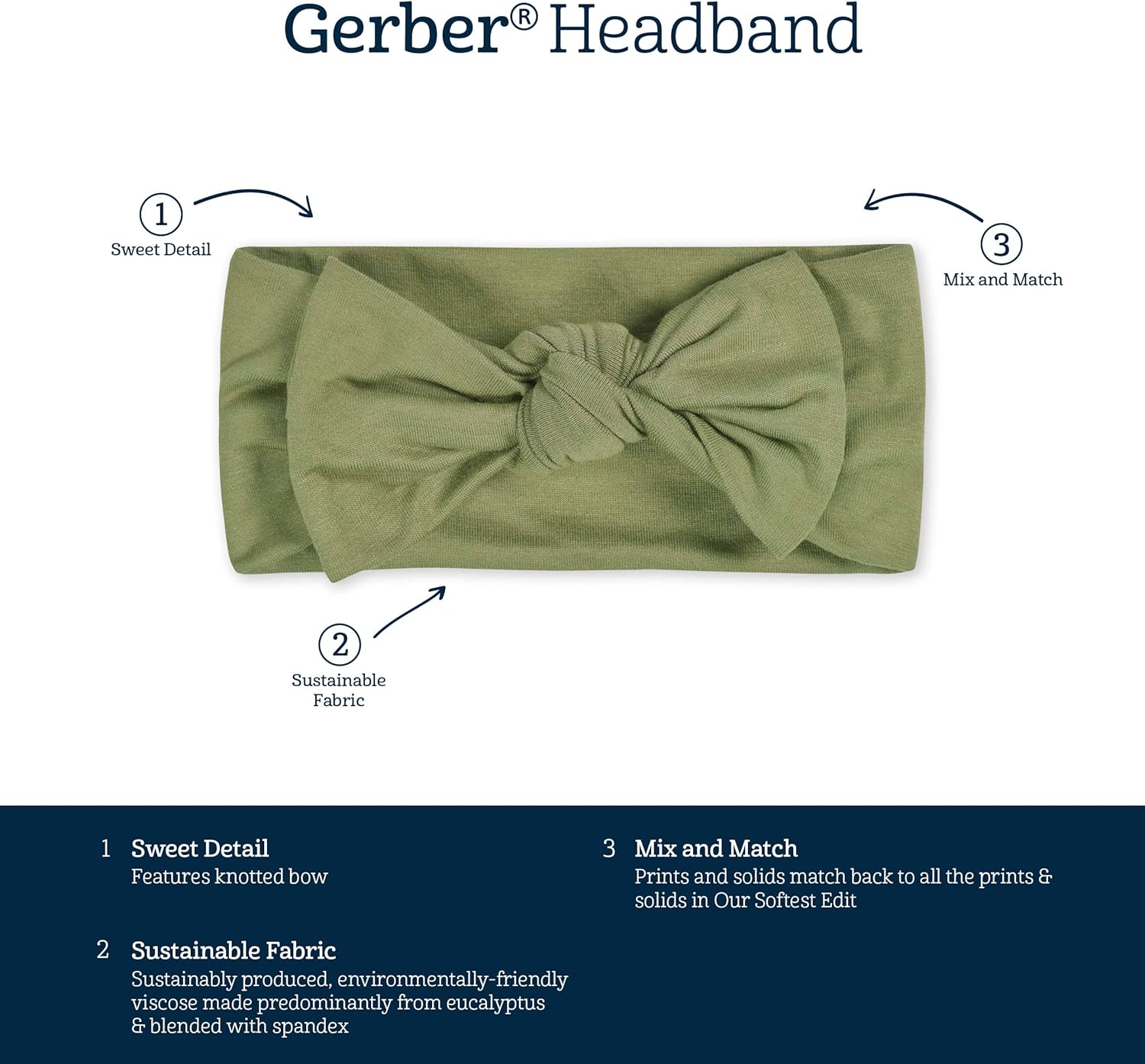 Gerber Baby Girls’ Buttery Soft Headband with Bow with Viscose Made from Eucalyptus(Moss)
