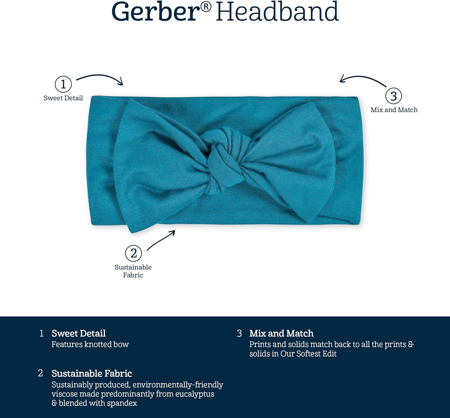 Gerber Baby Girls’ Buttery Soft Headband with Bow with Viscose Made from Eucalyptus(Ocean Teal)
